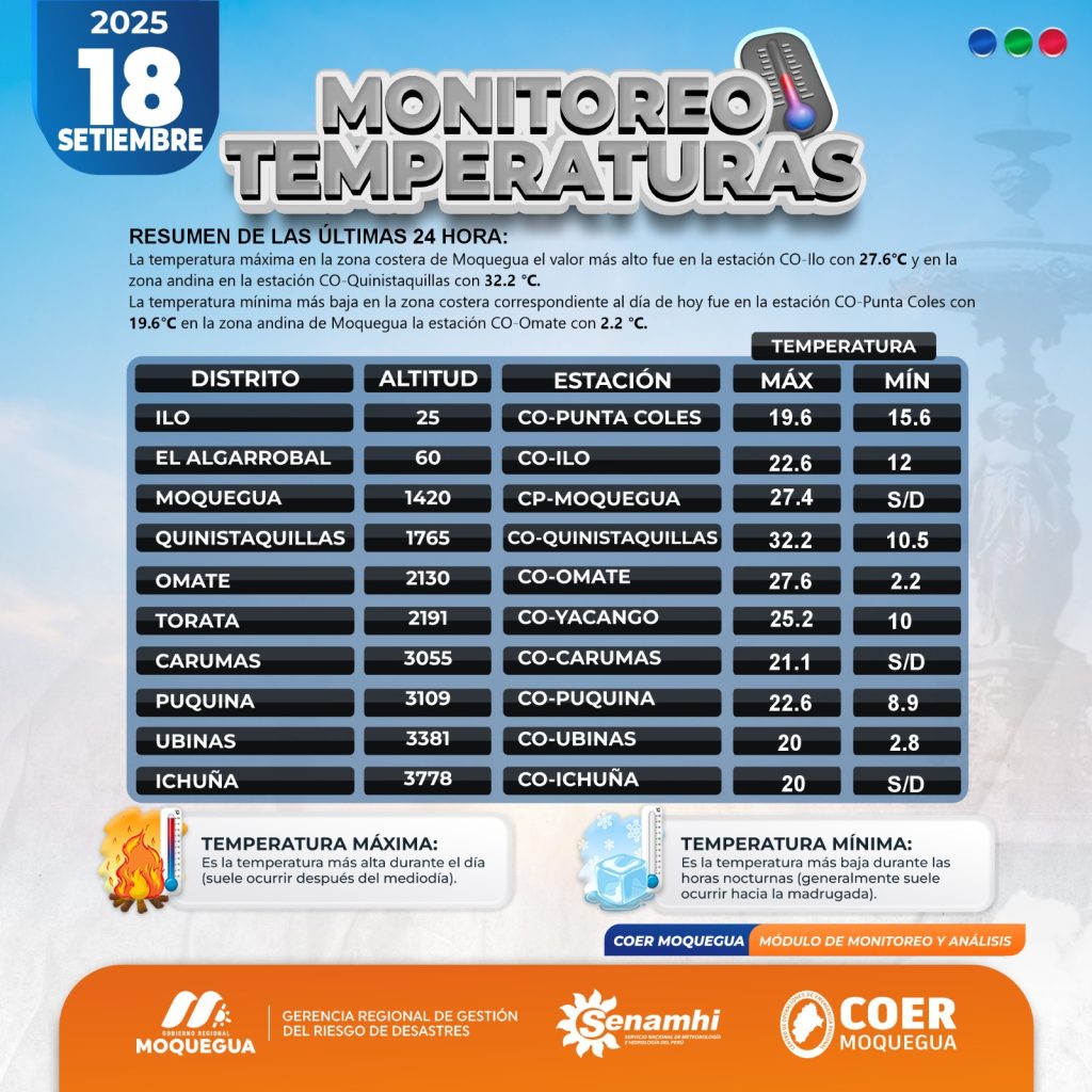 BOLETIN INFORMATIVO: "MONITOREO DE TEMPERATURAS" PARA EL 18 DE SEPTIEMBRE DEL 2025.