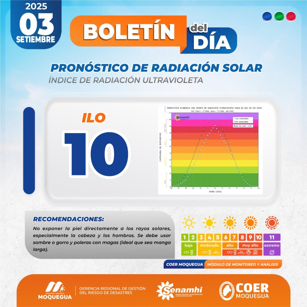 BOLETIN INFORMATIVO: «PRONOSTICO DE RADIACIÓN SOLAR» PARA EL 03 DE SEPTIEMBRE DEL 2025