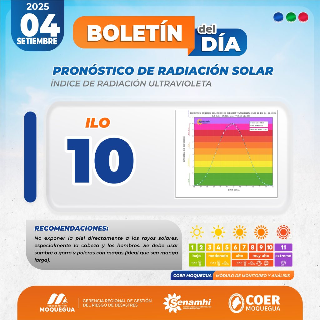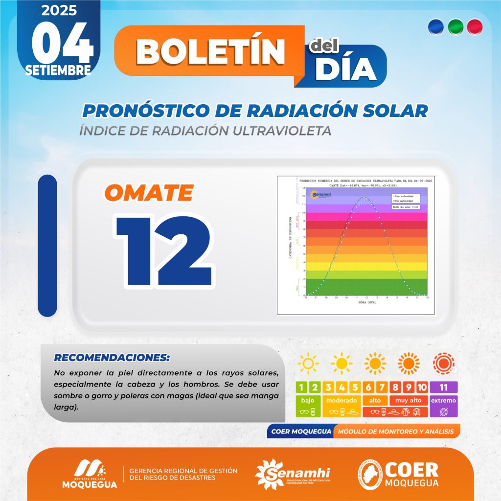 BOLETIN INFORMATIVO: «PRONOSTICO DE RADIACIÓN SOLAR» PARA EL 04 DE SEPTIEMBRE DEL 2025