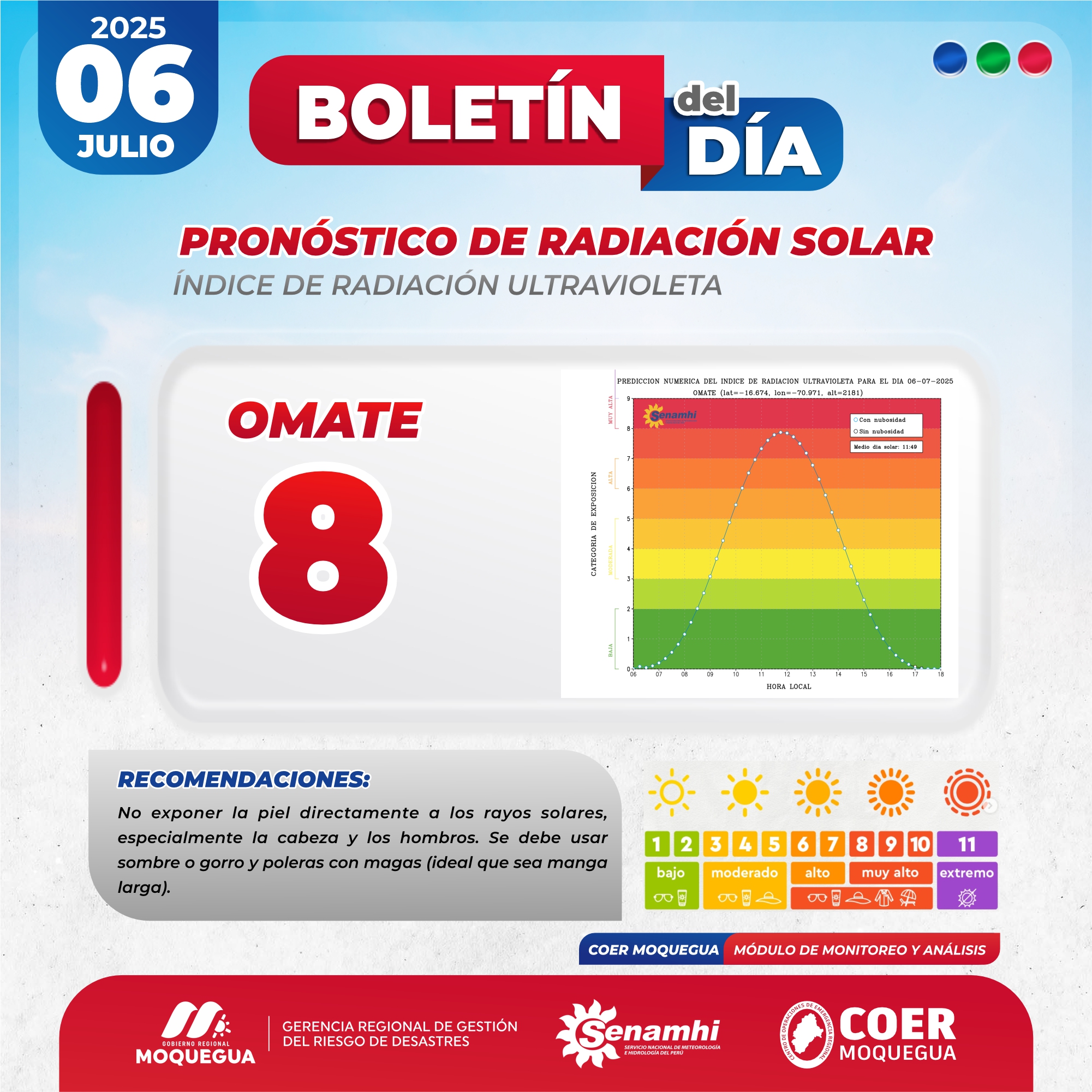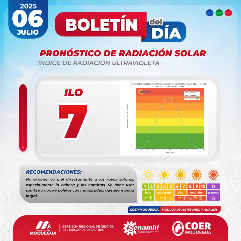 BOLETIN INFORMATIVO: «PRONOSTICO DE RADIACIÓN SOLAR» PARA EL 06 DE JULIO DEL 2025