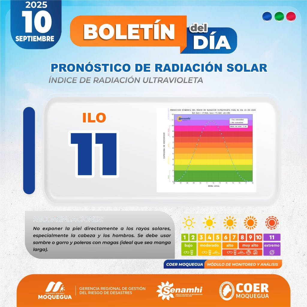 BOLETIN INFORMATIVO: "PRONOSTICO DE RADIACIÓN SOLAR" PARA EL 10 DE SEPTIEMBRE DEL 2025