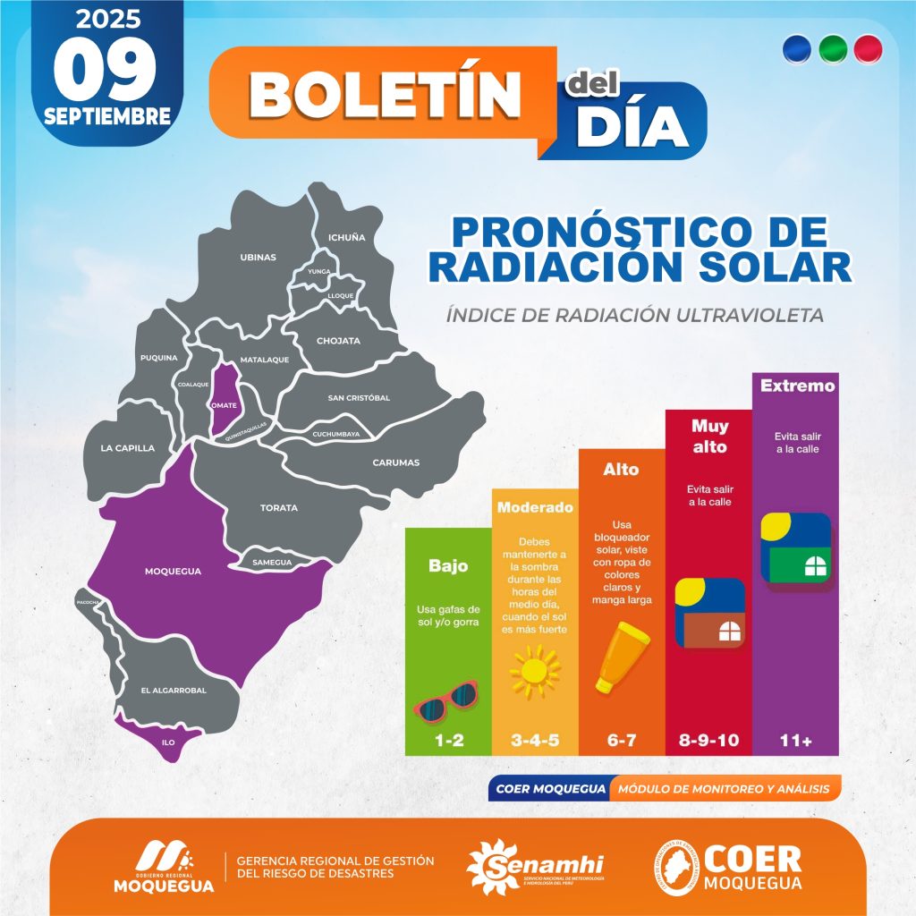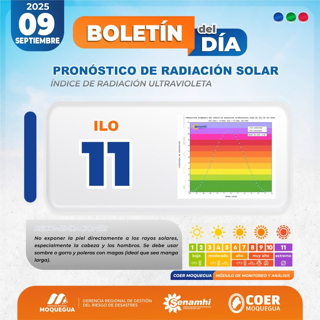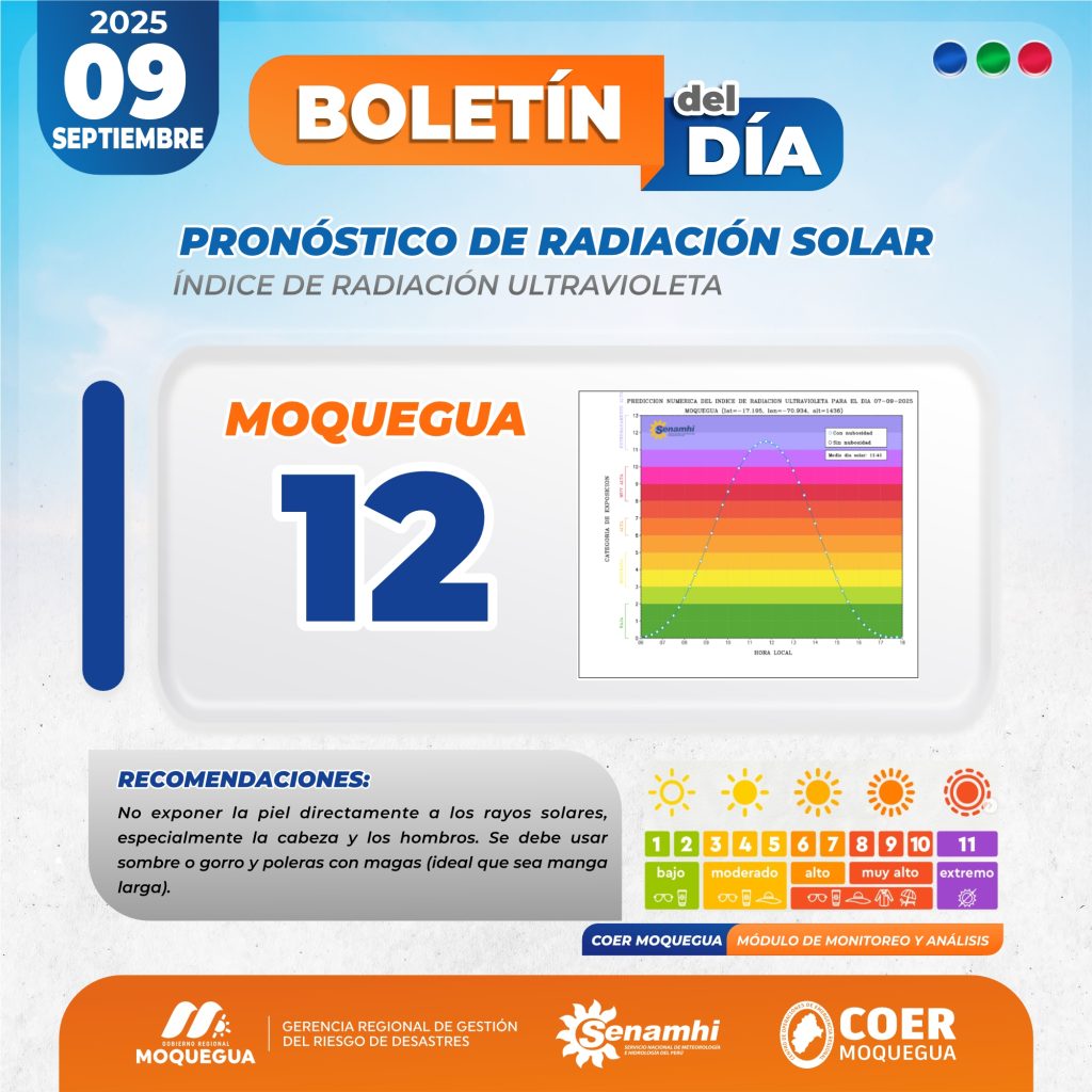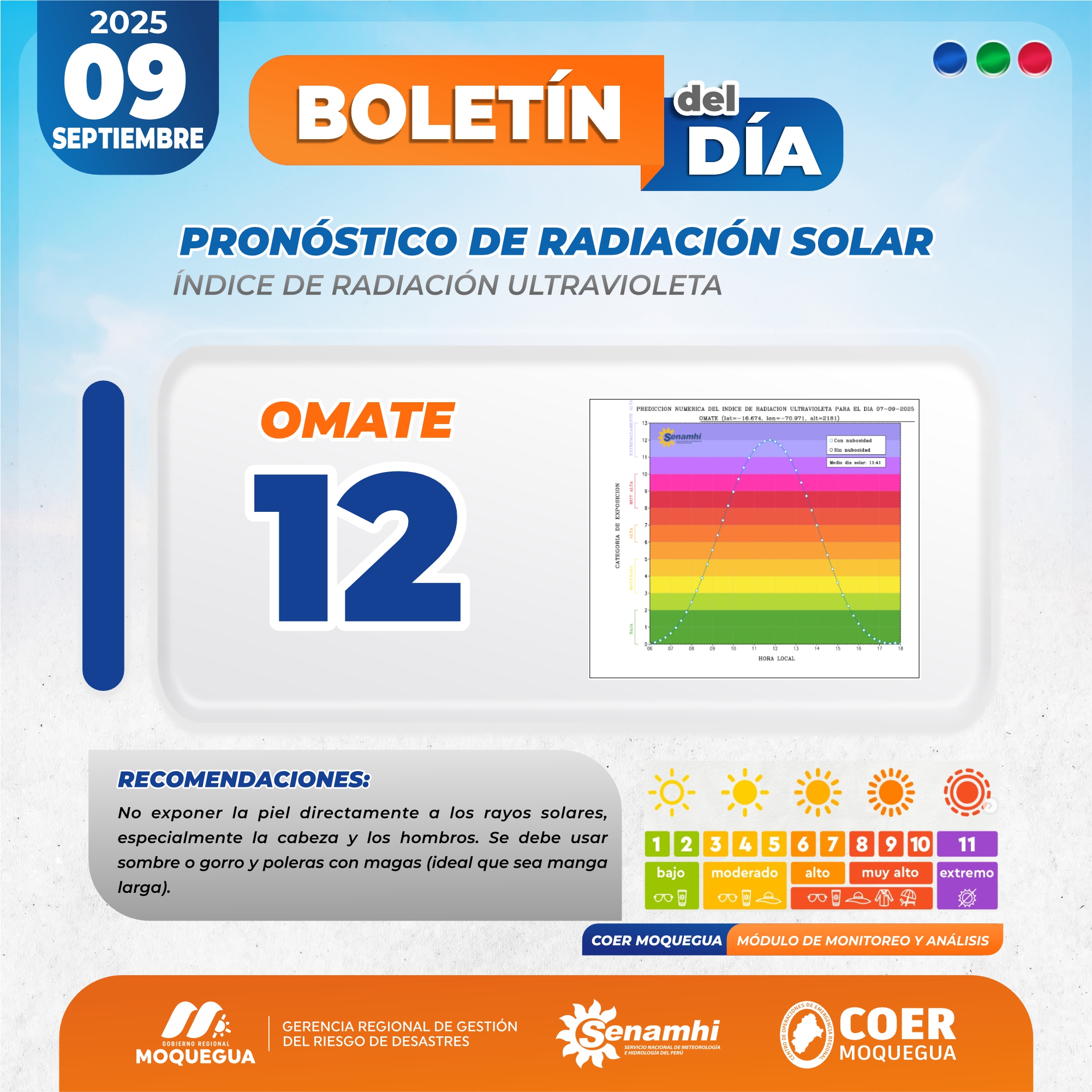BOLETIN INFORMATIVO: "PRONOSTICO DE RADIACIÓN SOLAR" PARA EL 09 DE SEPTIEMBRE DEL 2025