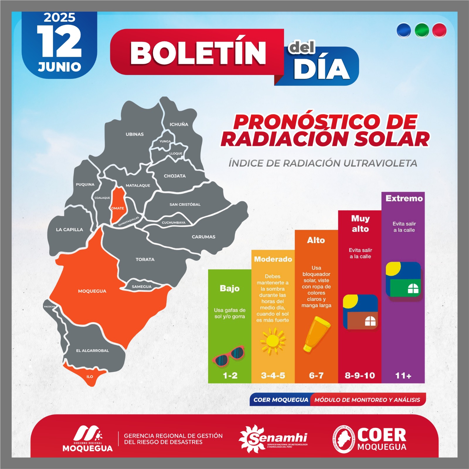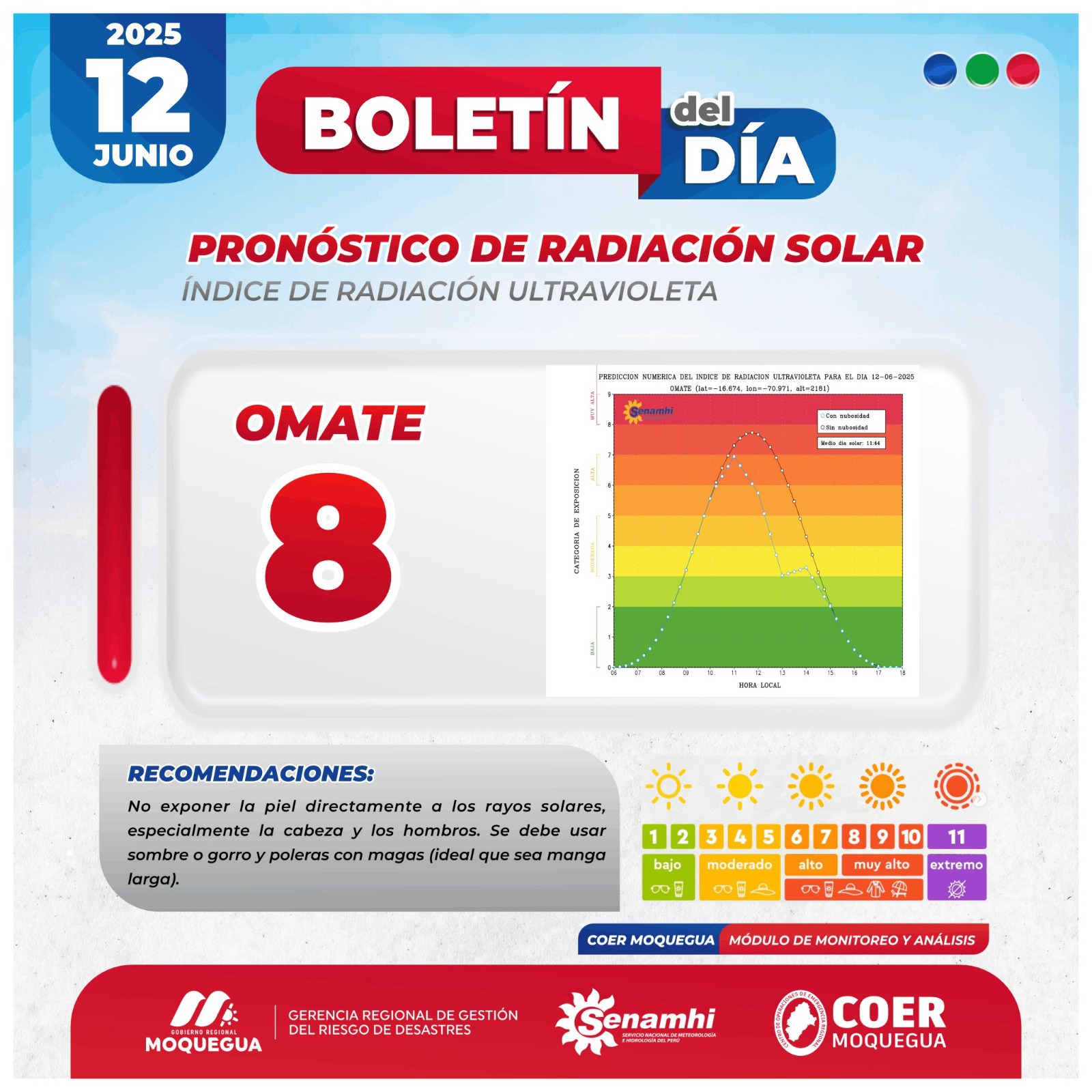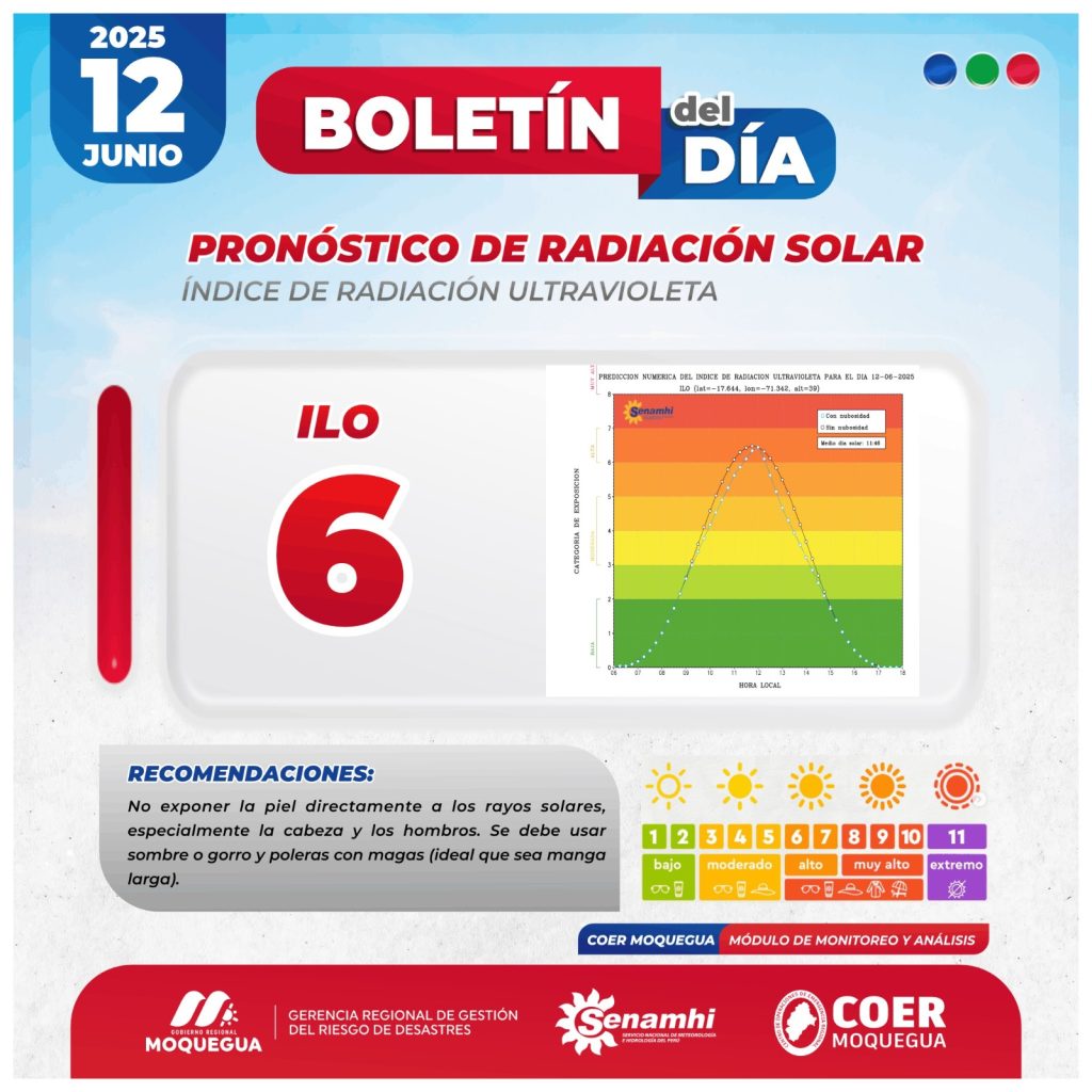 BOLETIN INFORMATIVO: "PRONOSTICO DE RADIACIÓN SOLAR" PARA EL 12 DE JUNIO DEL 2025.
