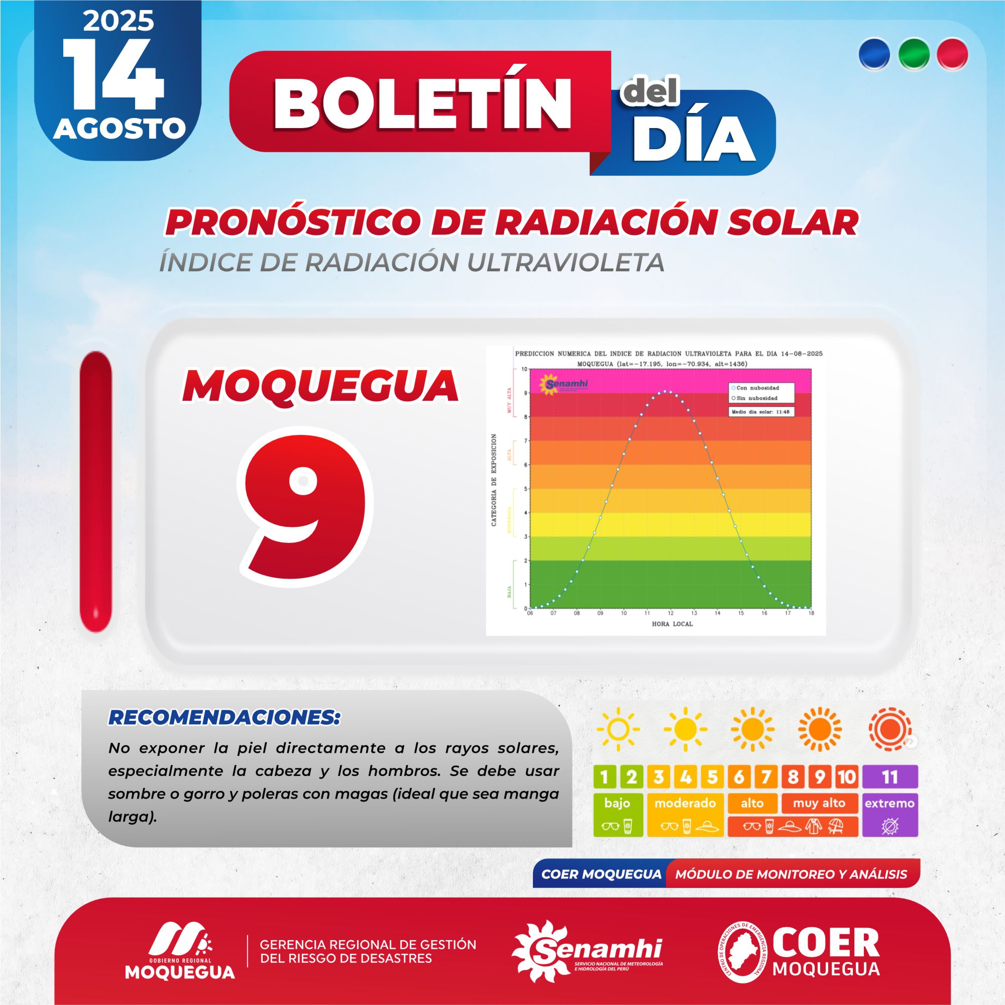 BOLETIN INFORMATIVO: "PRONOSTICO DE RADIACIÓN SOLAR" PARA EL 14 DE AGOSTO DEL 2025