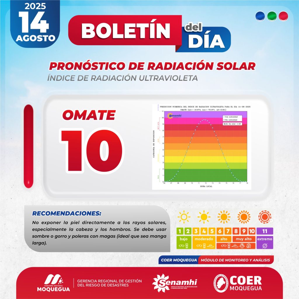 BOLETIN INFORMATIVO: «PRONOSTICO DE RADIACIÓN SOLAR» PARA EL 14 DE AGOSTO DEL 2025.