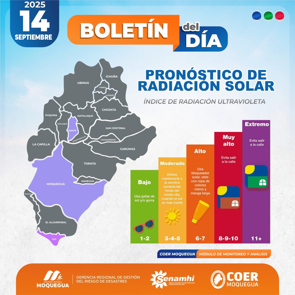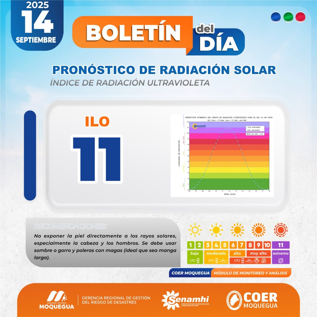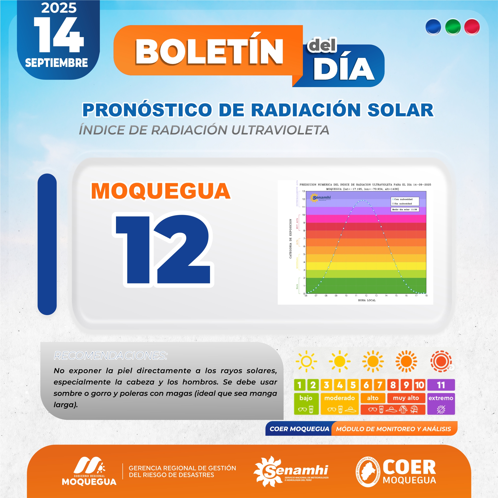 BOLETIN INFORMATIVO: "PRONOSTICO DE RADIACIÓN SOLAR" PARA EL 14 DE SEPTIEMBRE DEL 2025