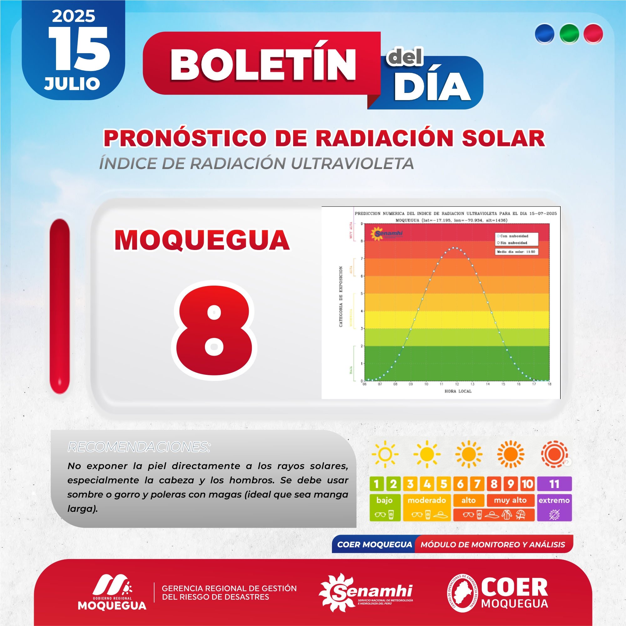 BOLETIN INFORMATIVO: «PRONOSTICO DE RADIACIÓN SOLAR» PARA EL 15 DE JULIO DEL 2025.