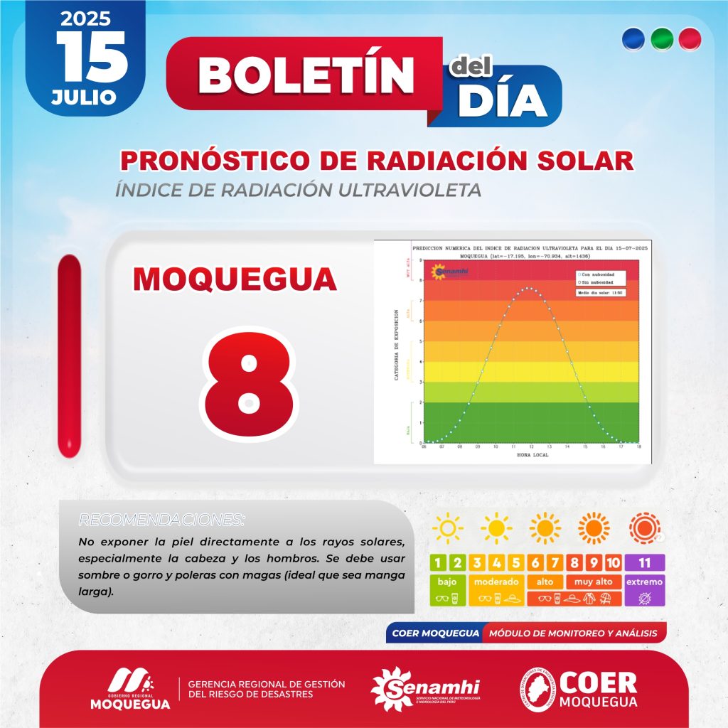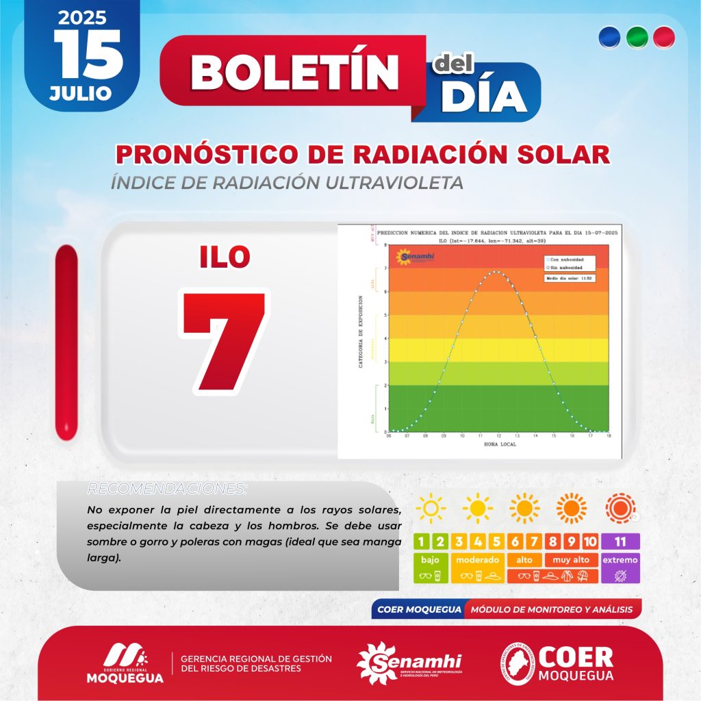 BOLETIN INFORMATIVO: "PRONOSTICO DE RADIACIÓN SOLAR" PARA EL 15 DE JULIO DEL 2025
