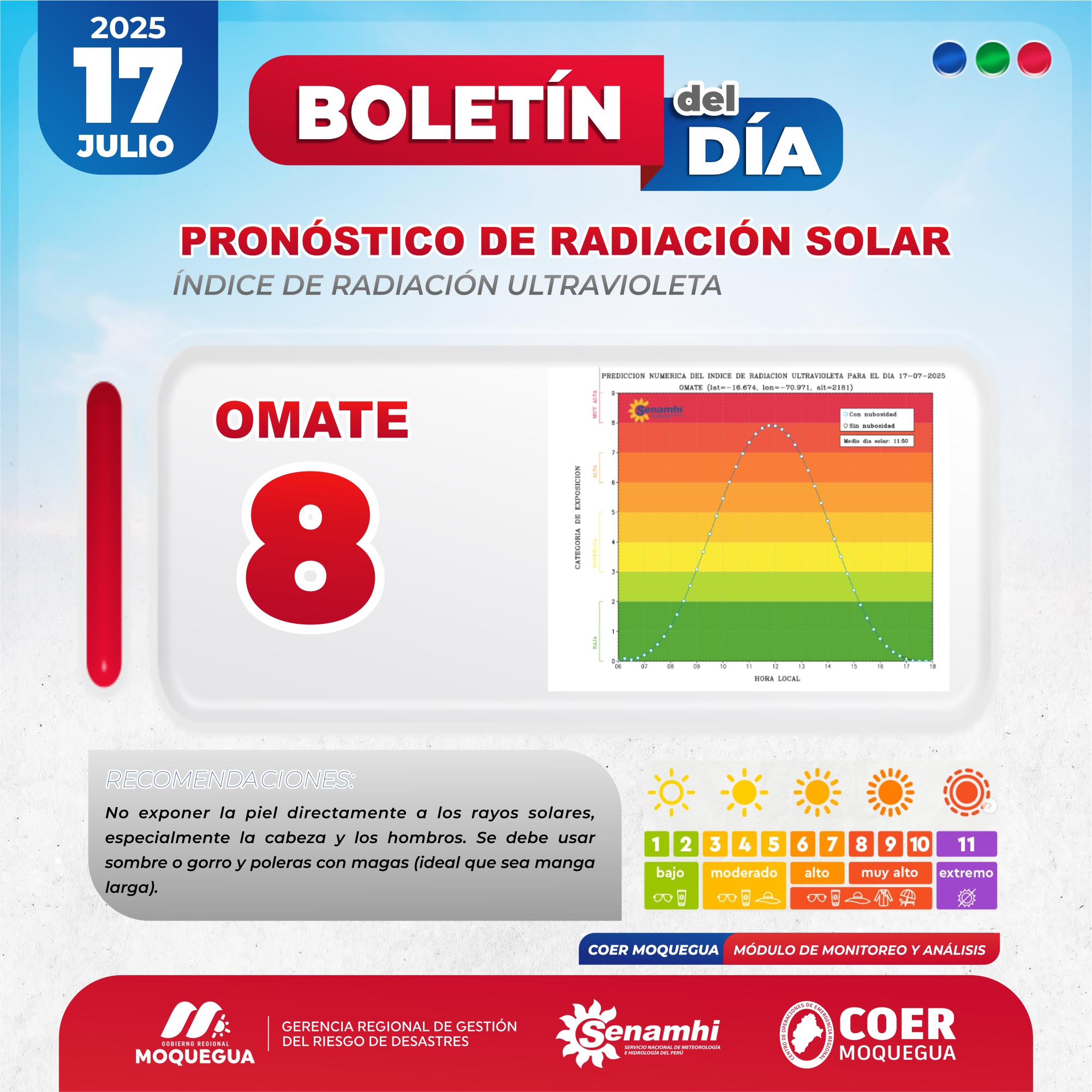BOLETIN INFORMATIVO: "PRONOSTICO DE RADIACIÓN SOLAR" PARA EL 17 DE JULIO DEL 2025
