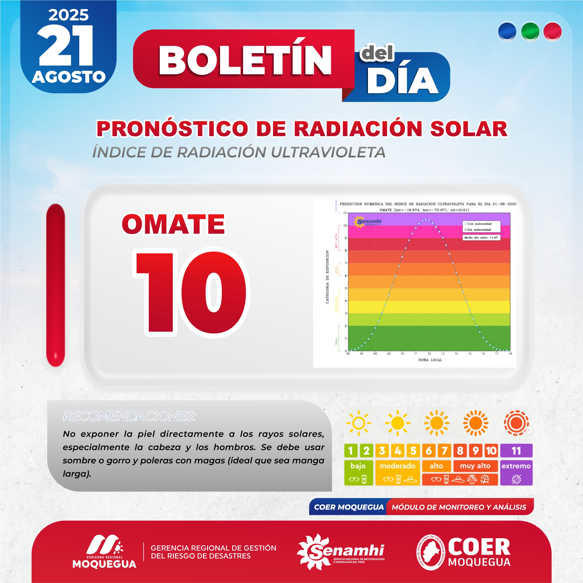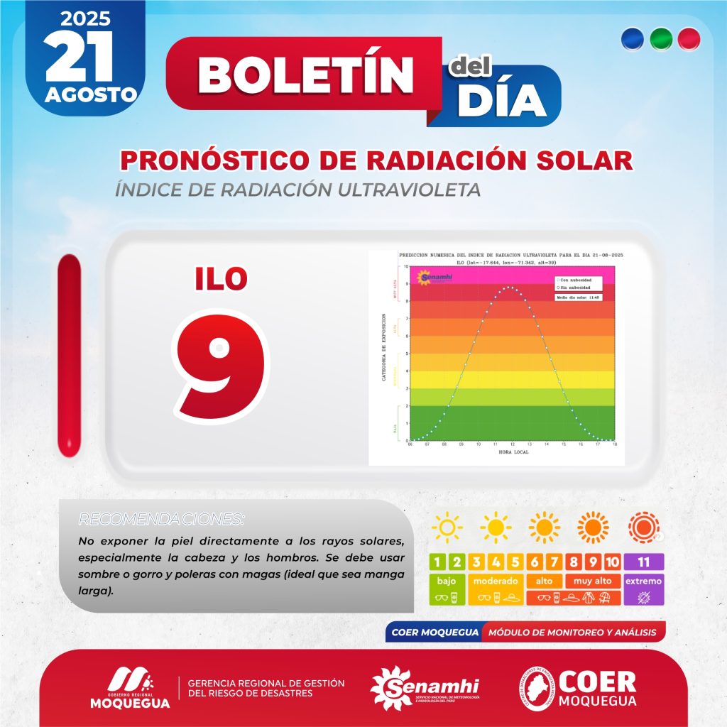 BOLETIN INFORMATIVO: "PRONOSTICO DE RADIACIÓN SOLAR" PARA EL 21 DE AGOSTO DEL 2025