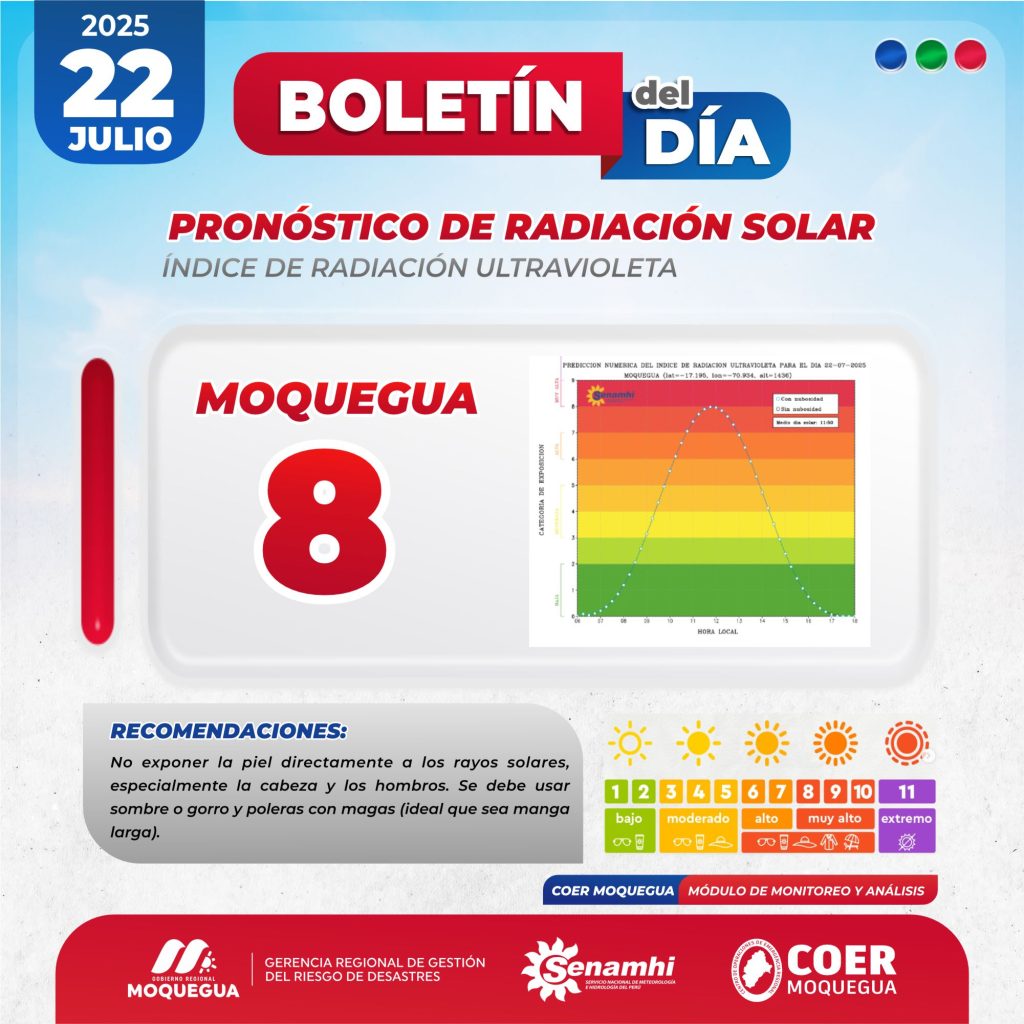 BOLETIN INFORMATIVO: «PRONOSTICO DE RADIACIÓN SOLAR» PARA EL 22 DE JULIO DEL 2025.