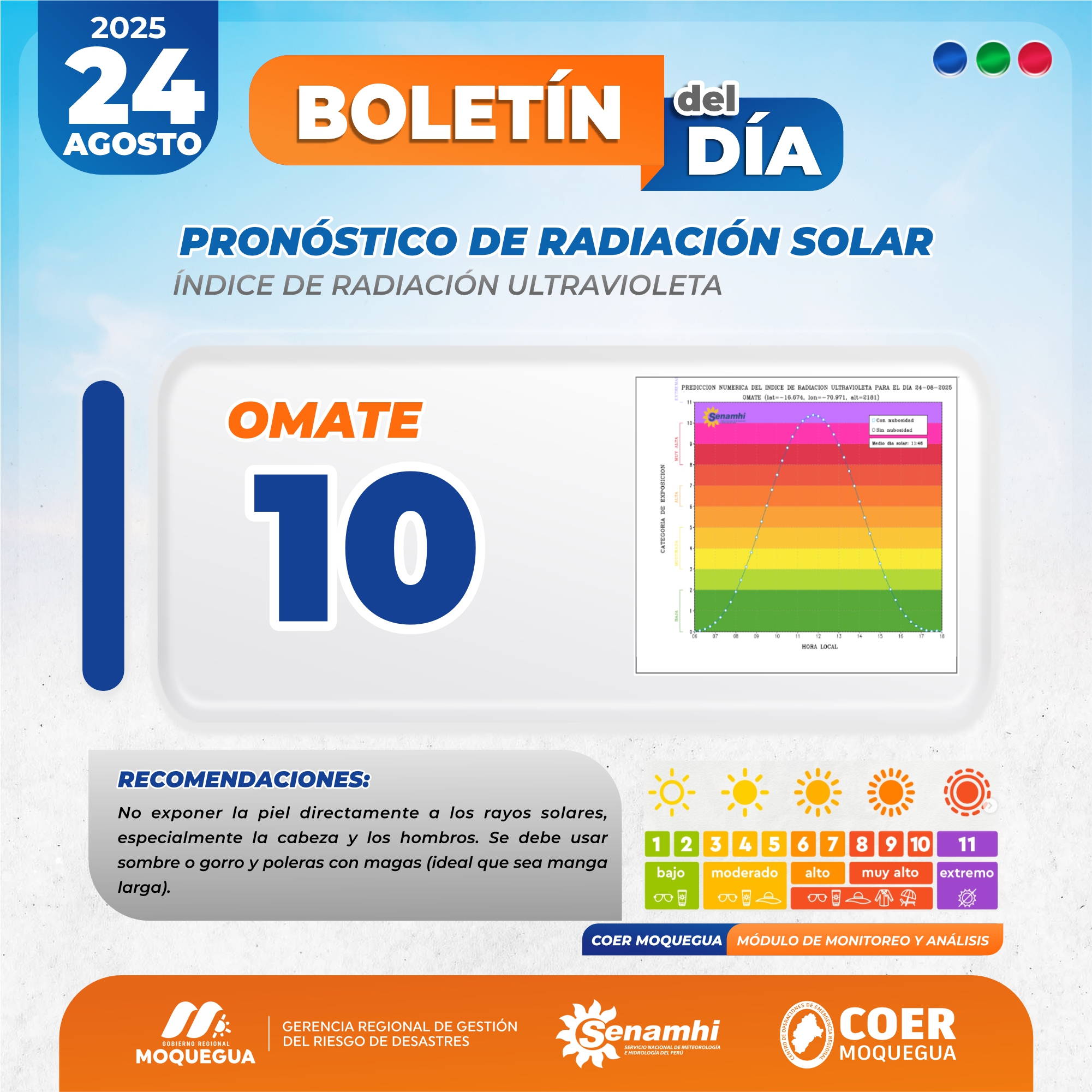 BOLETIN INFORMATIVO: "PRONOSTICO DE RADIACIÓN SOLAR" PARA EL 24 DE AGOSTO DEL 2025