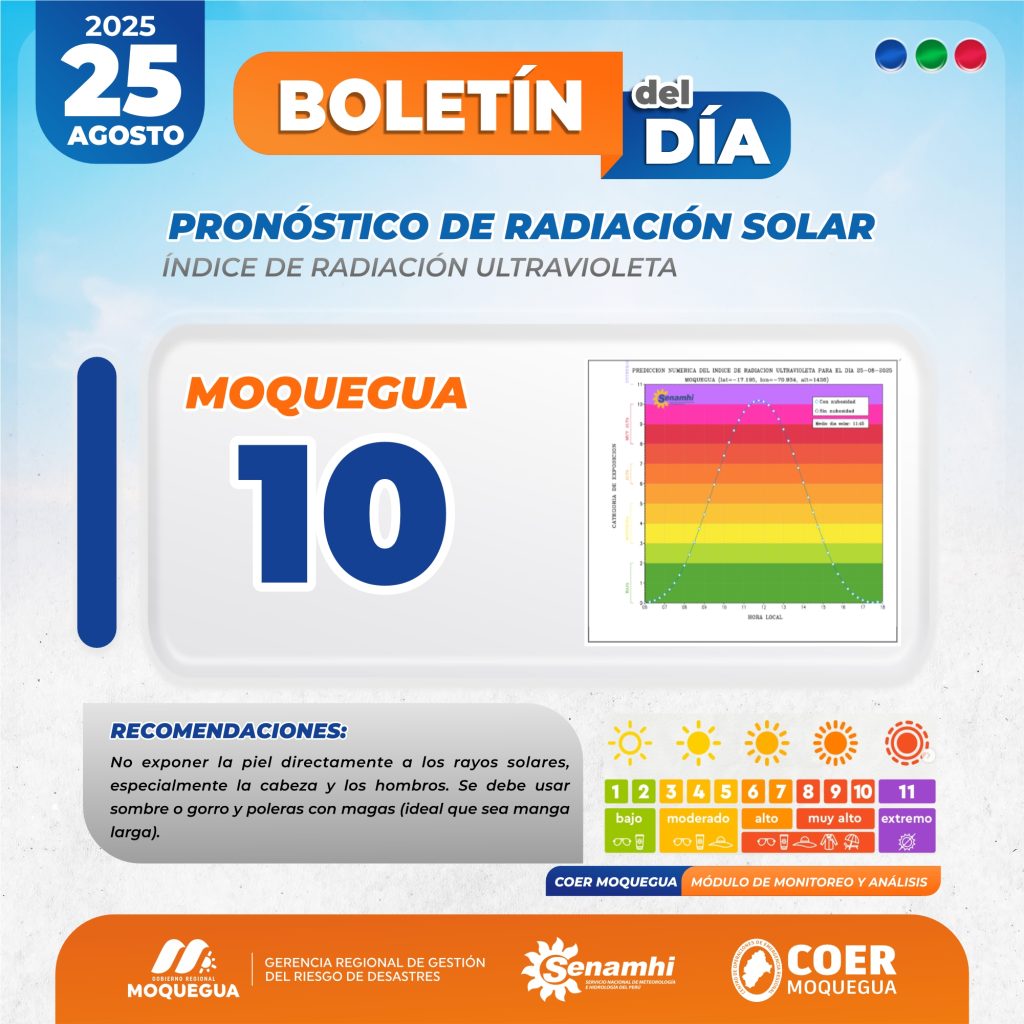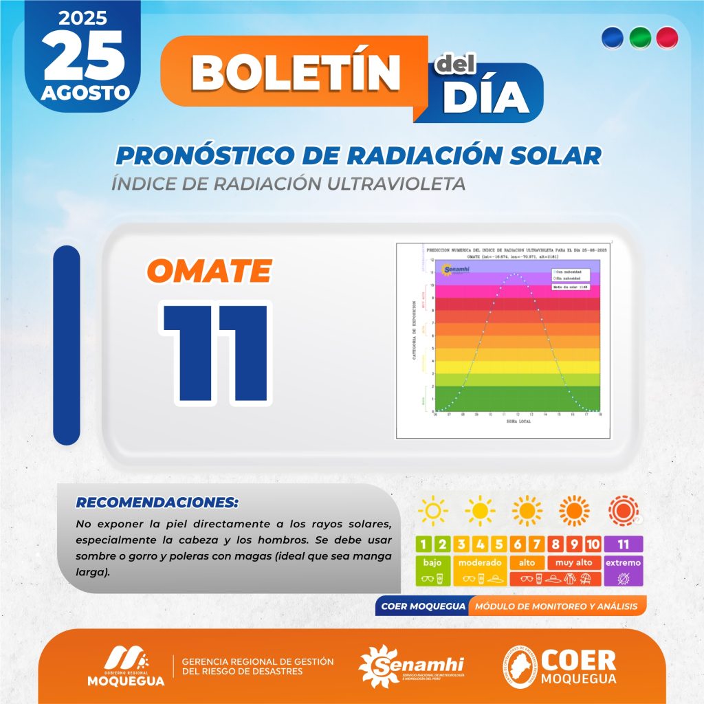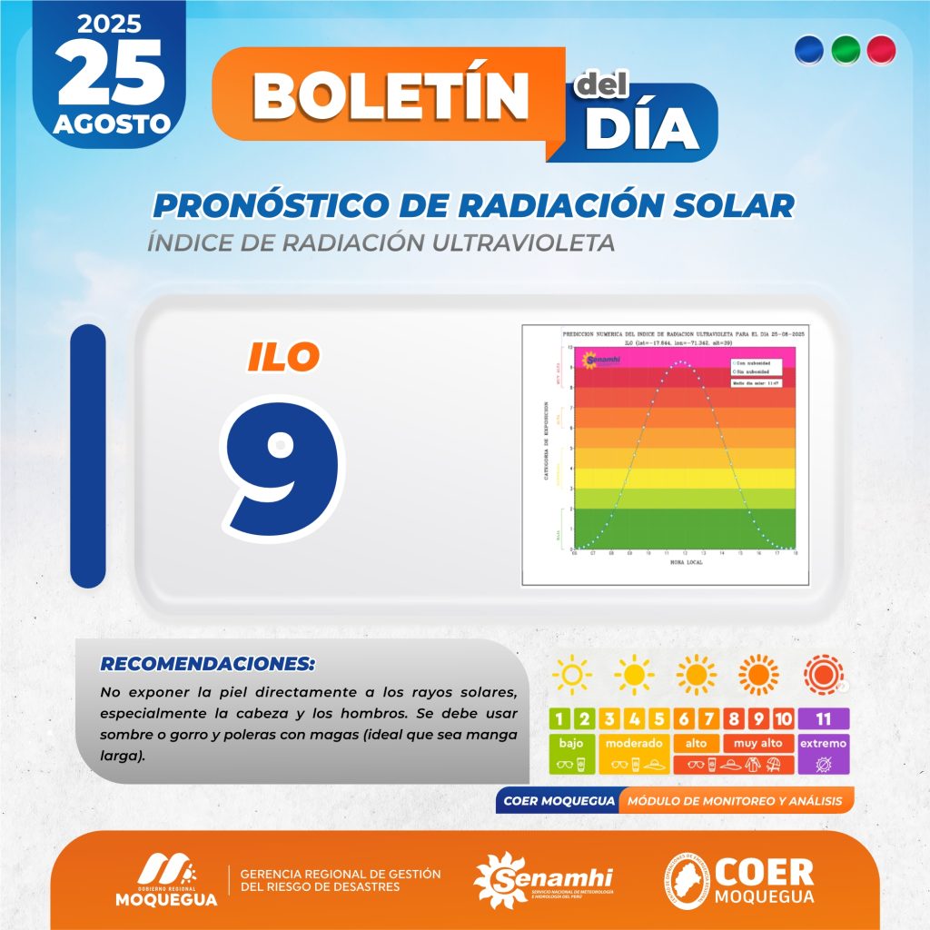 BOLETIN INFORMATIVO: "PRONOSTICO DE RADIACIÓN SOLAR" PARA EL 25 DE AGOSTO DEL 2025