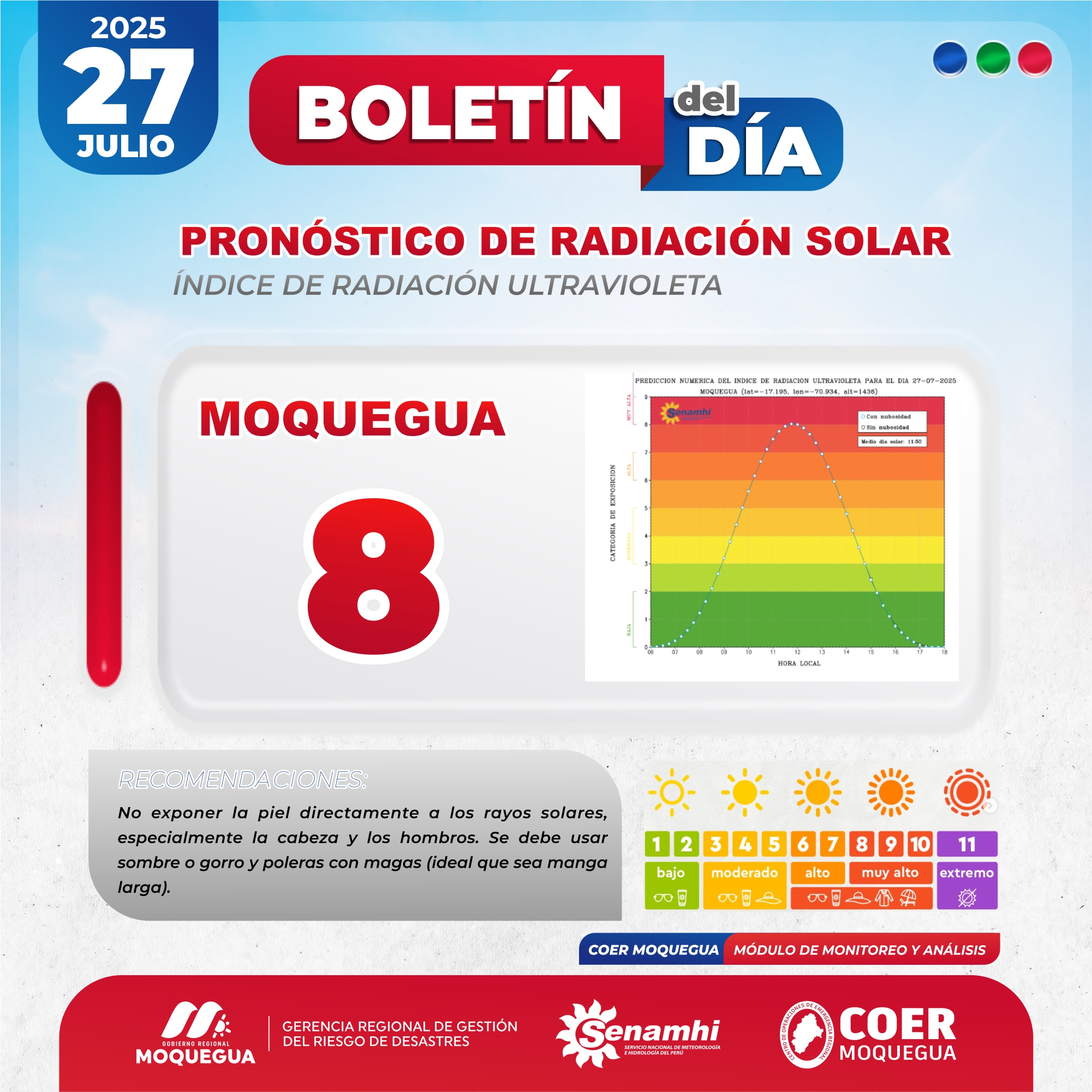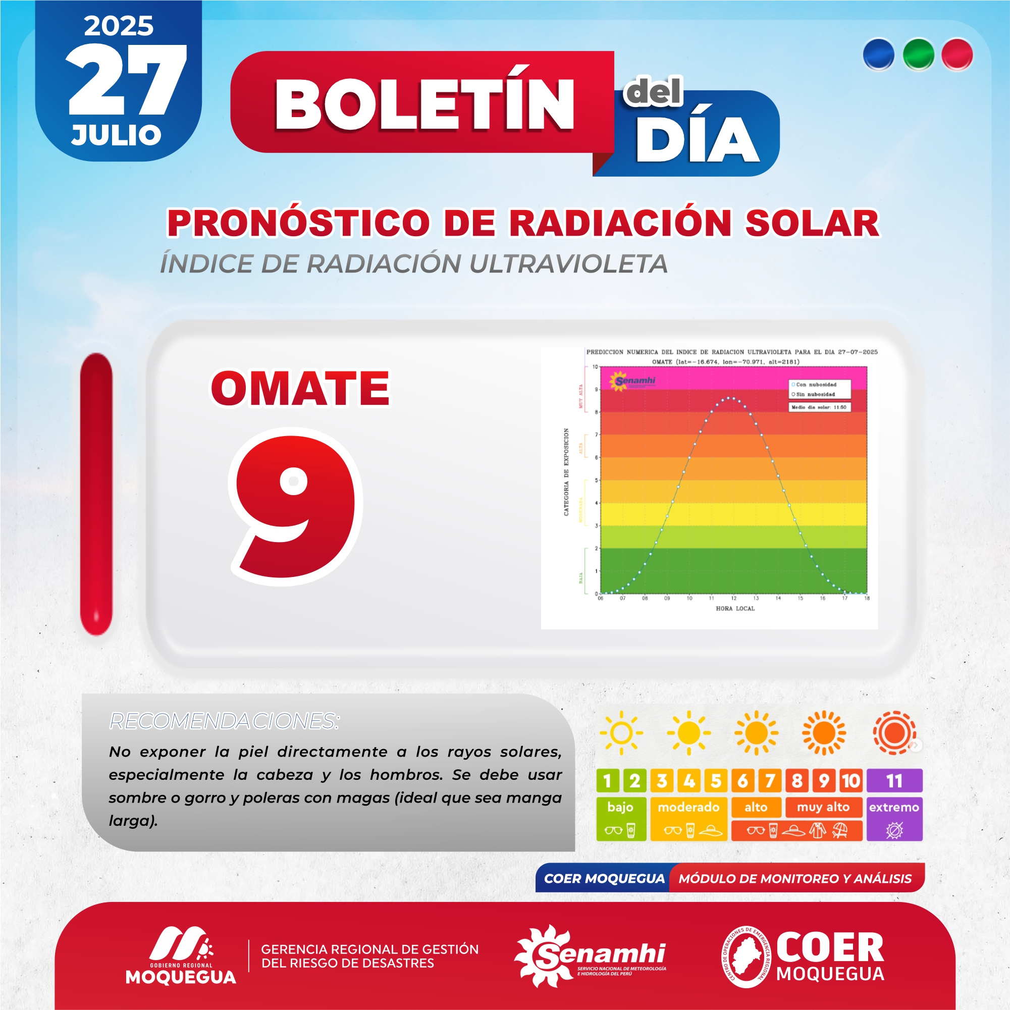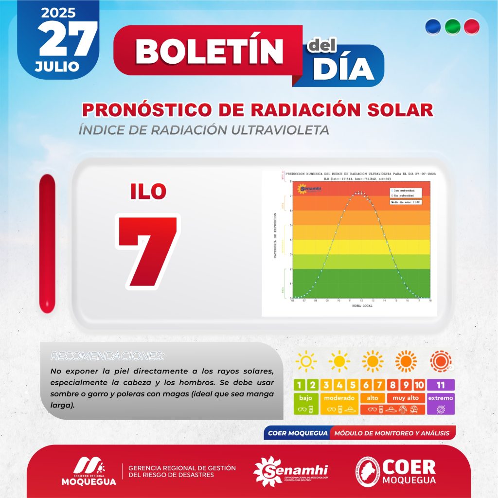 BOLETIN INFORMATIVO: "PRONOSTICO DE RADIACIÓN SOLAR" PARA EL 27 DE JULIO DEL 2025
