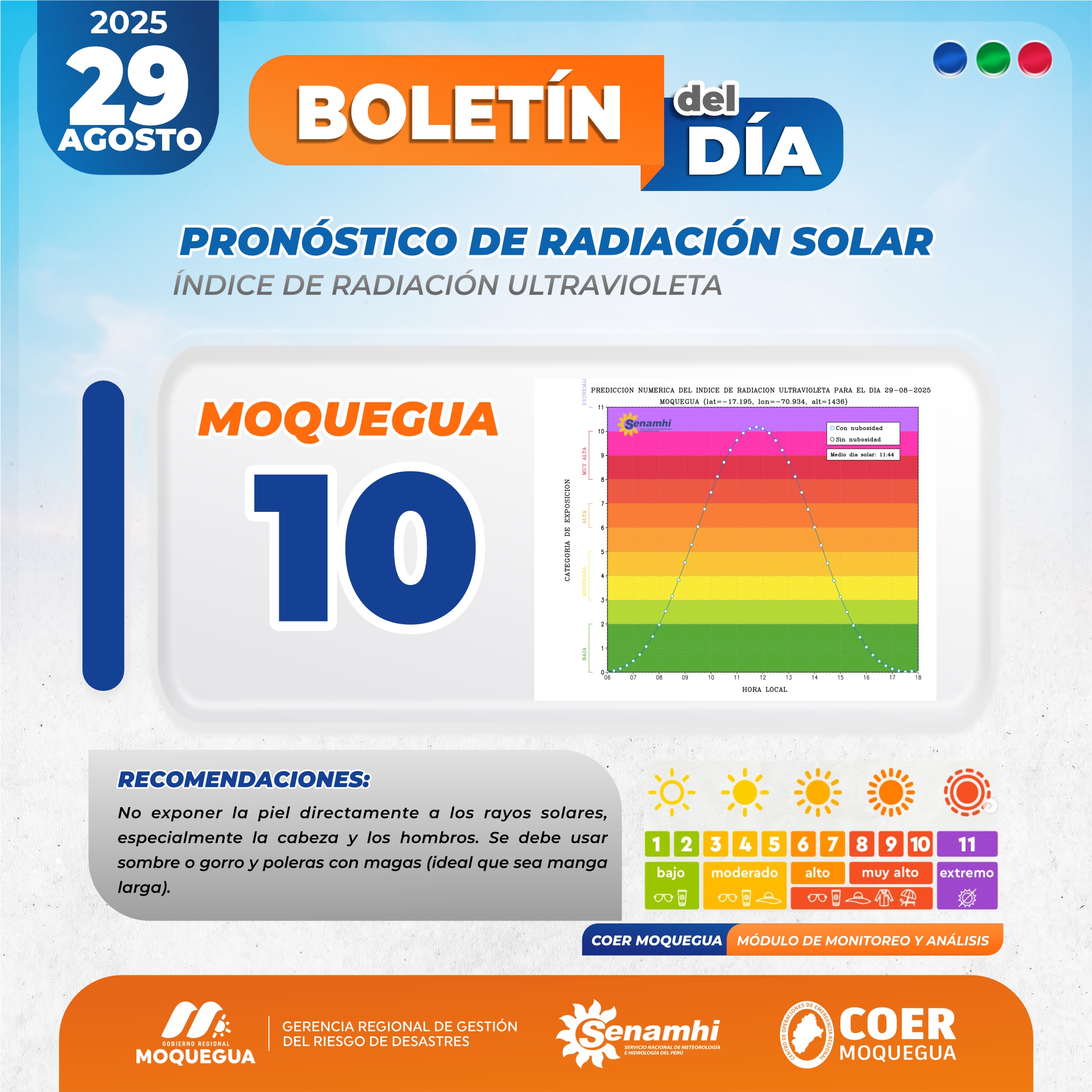 BOLETIN INFORMATIVO: «PRONOSTICO DE RADIACIÓN SOLAR» PARA EL 29 DE AGOSTO DEL 2025.