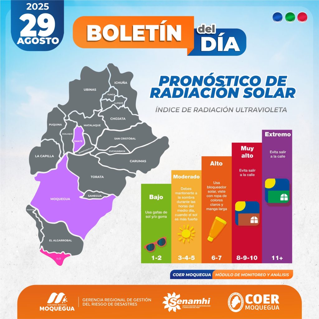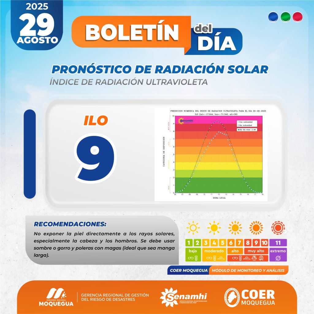 BOLETIN INFORMATIVO: "PRONOSTICO DE RADIACIÓN SOLAR" PARA EL 29 DE AGOSTO DEL 2025