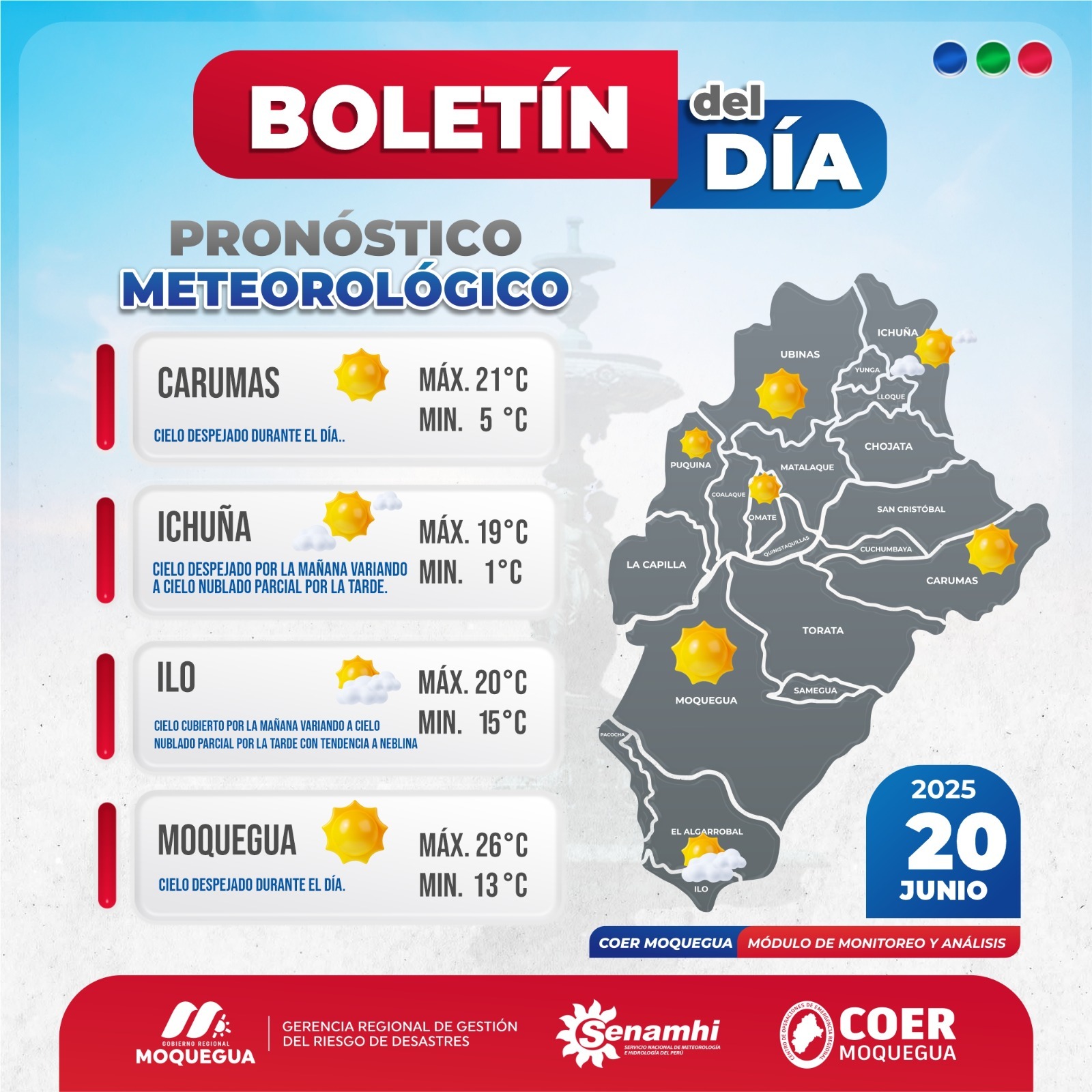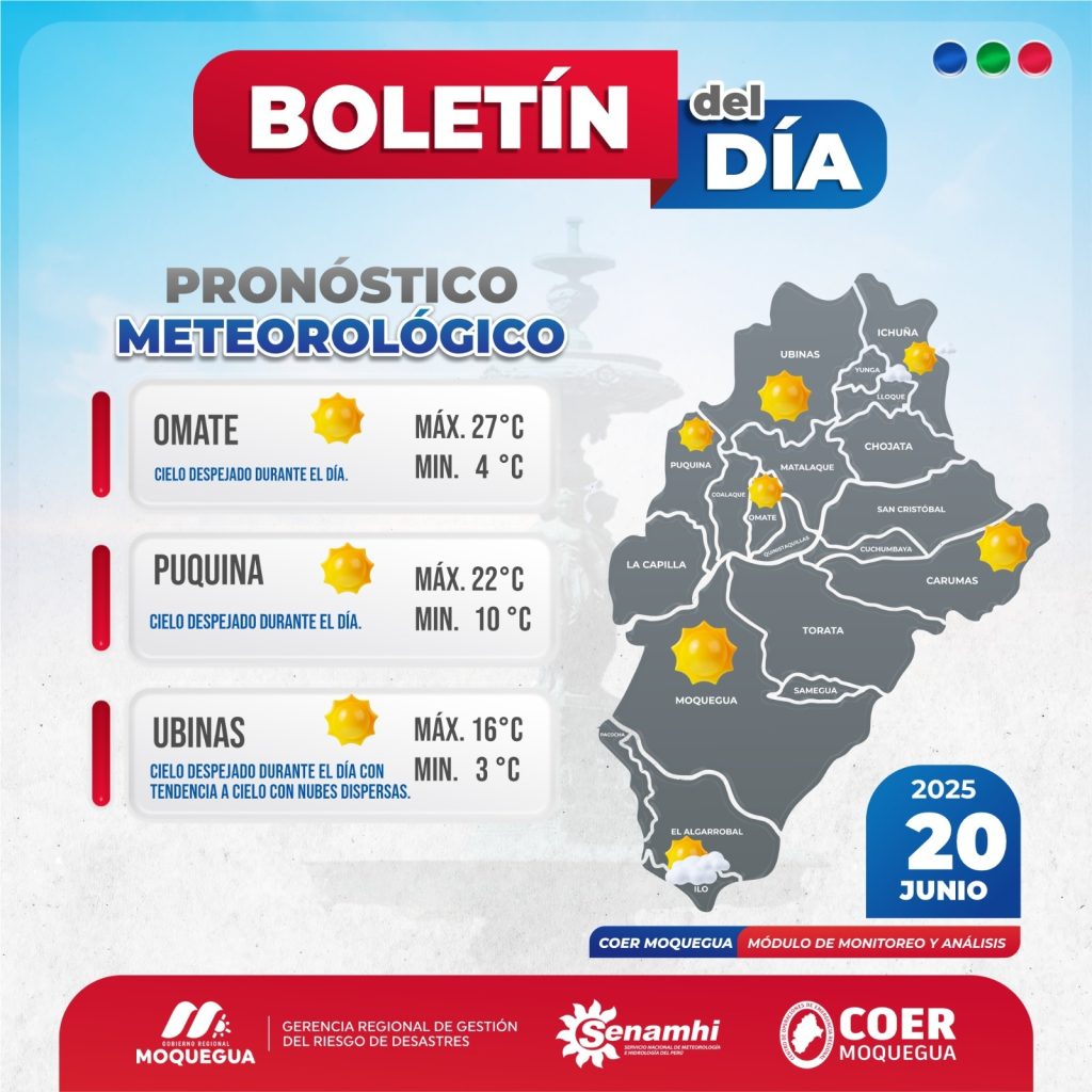 BOLETIN INFORMATIVO: "PRONOSTICO METEOROLÓGICO" PARA EL 20 DE JUNIO DEL 2025.