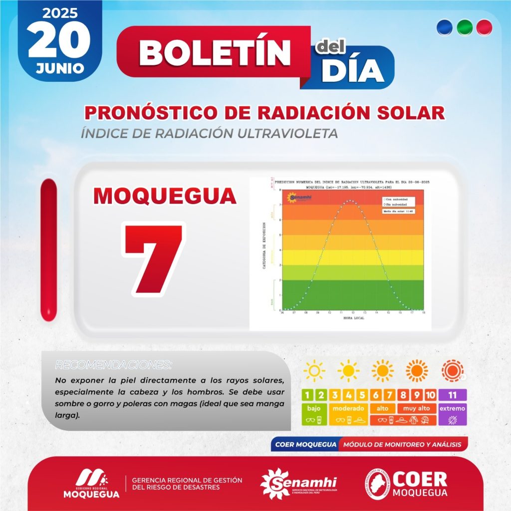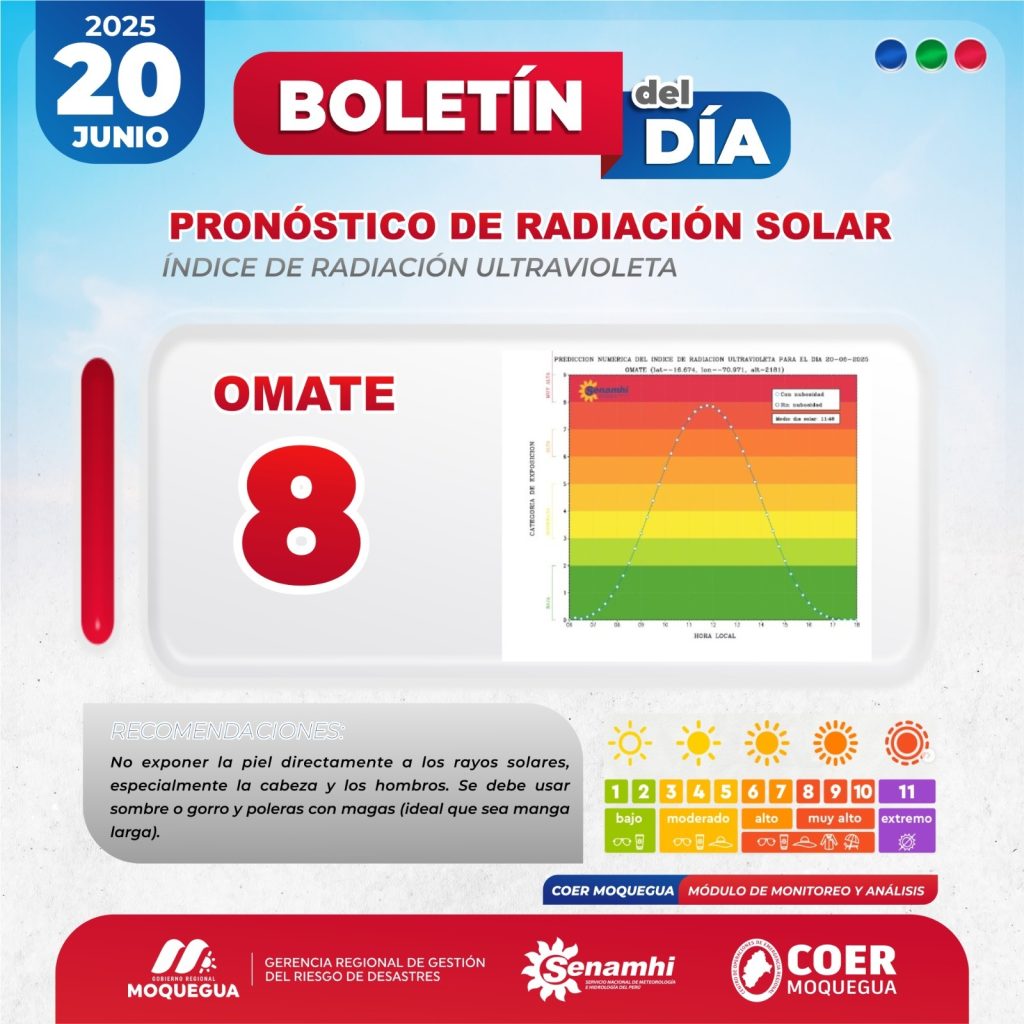 BOLETIN INFORMATIVO: «PRONOSTICO DE RADIACIÓN SOLAR» PARA EL 20 DE JUNIO DEL 2025.