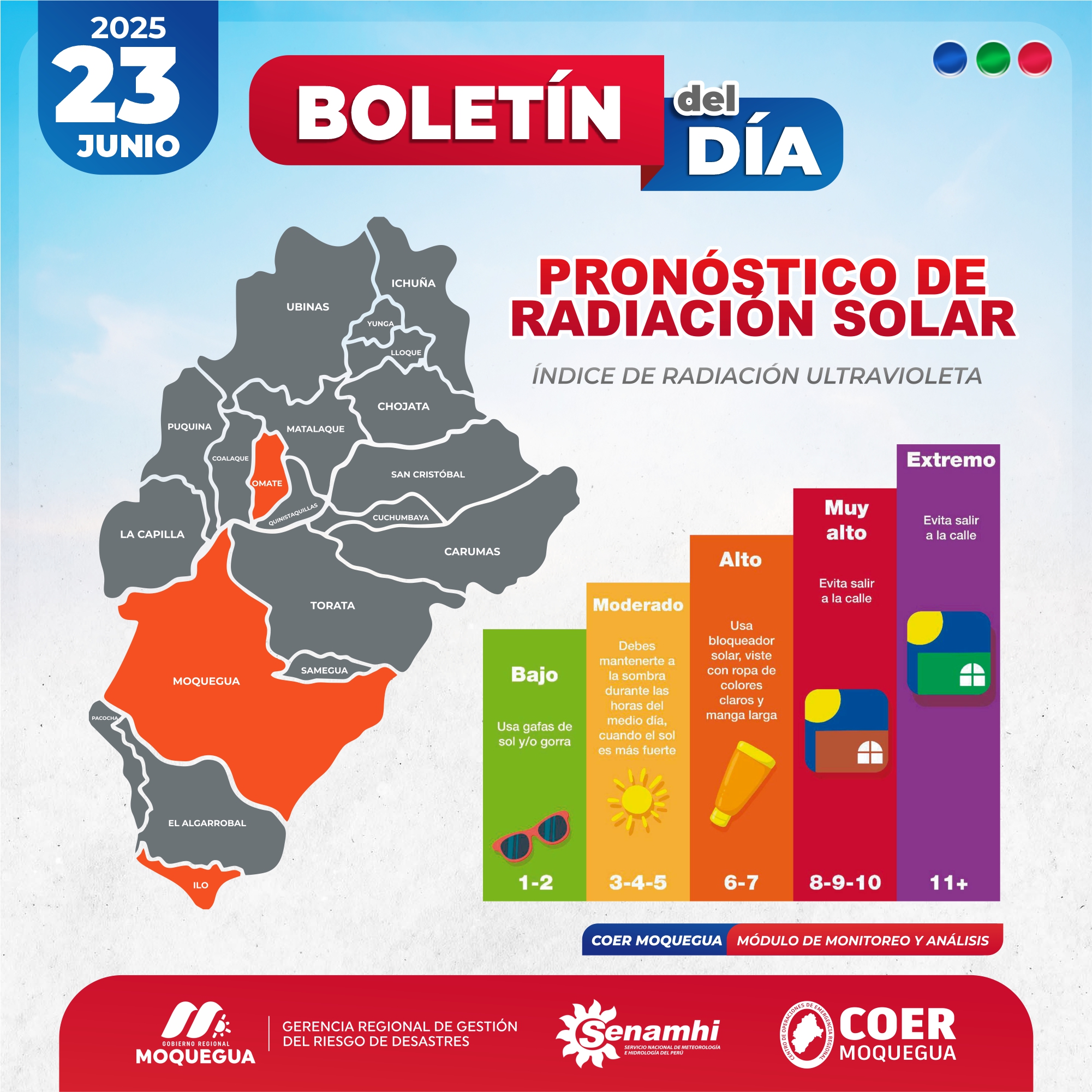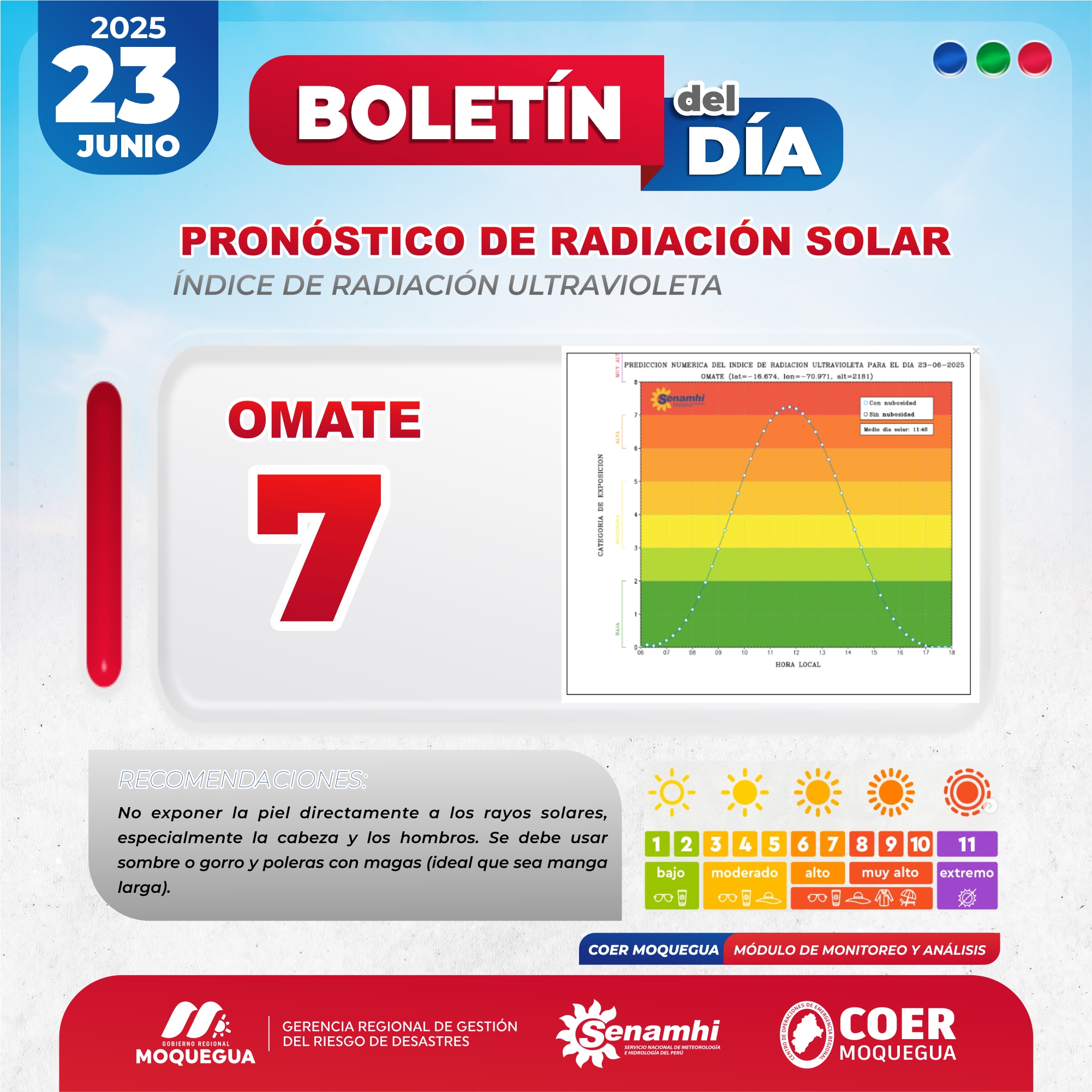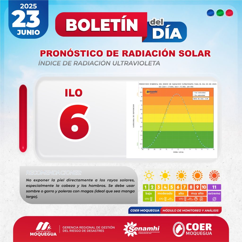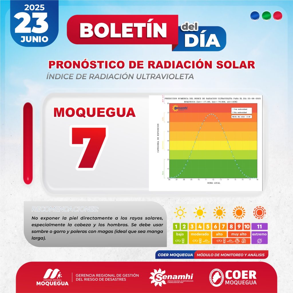 BOLETIN INFORMATIVO: "PRONOSTICO DE RADIACIÓN SOLAR" PARA EL 23 DE JUNIO DEL 2025