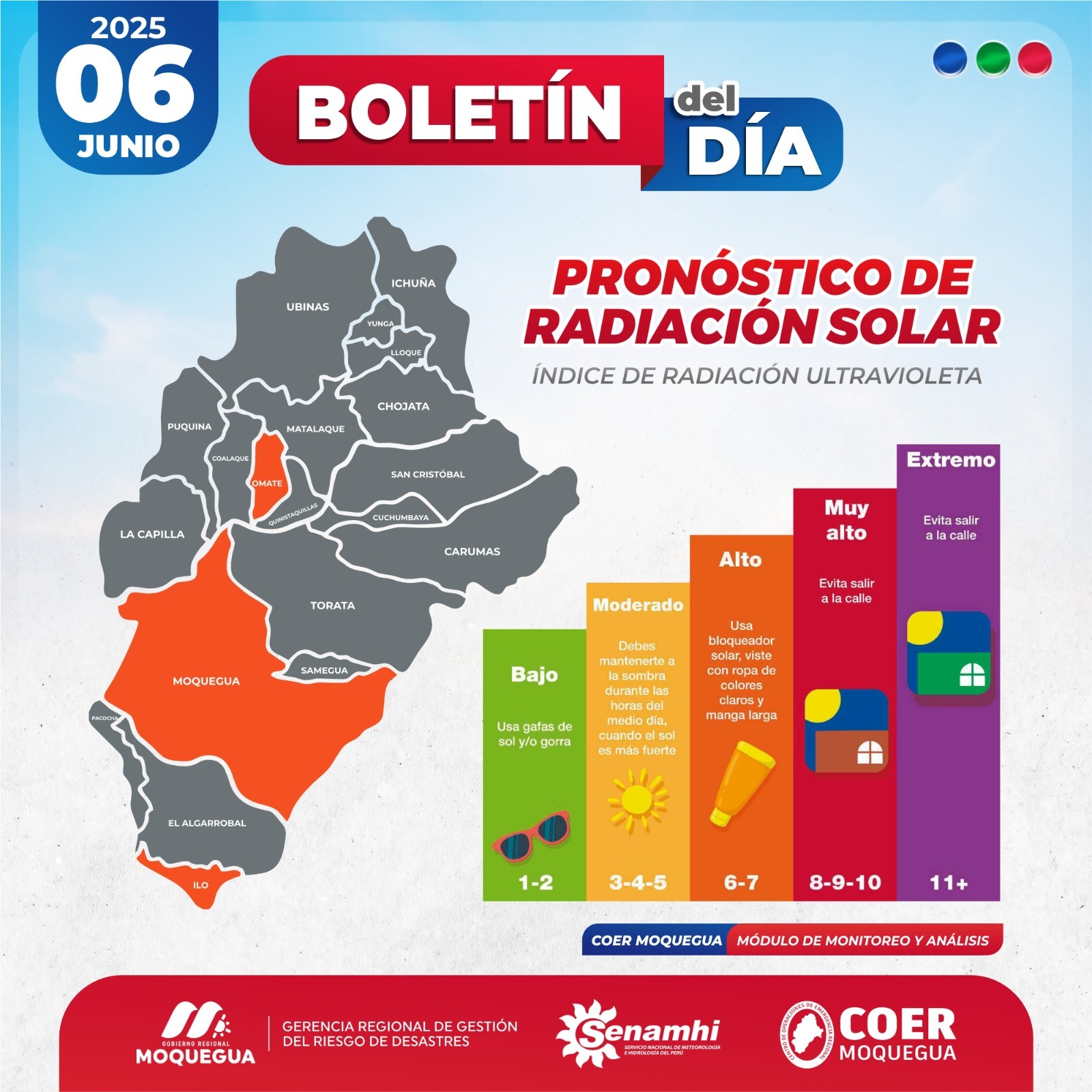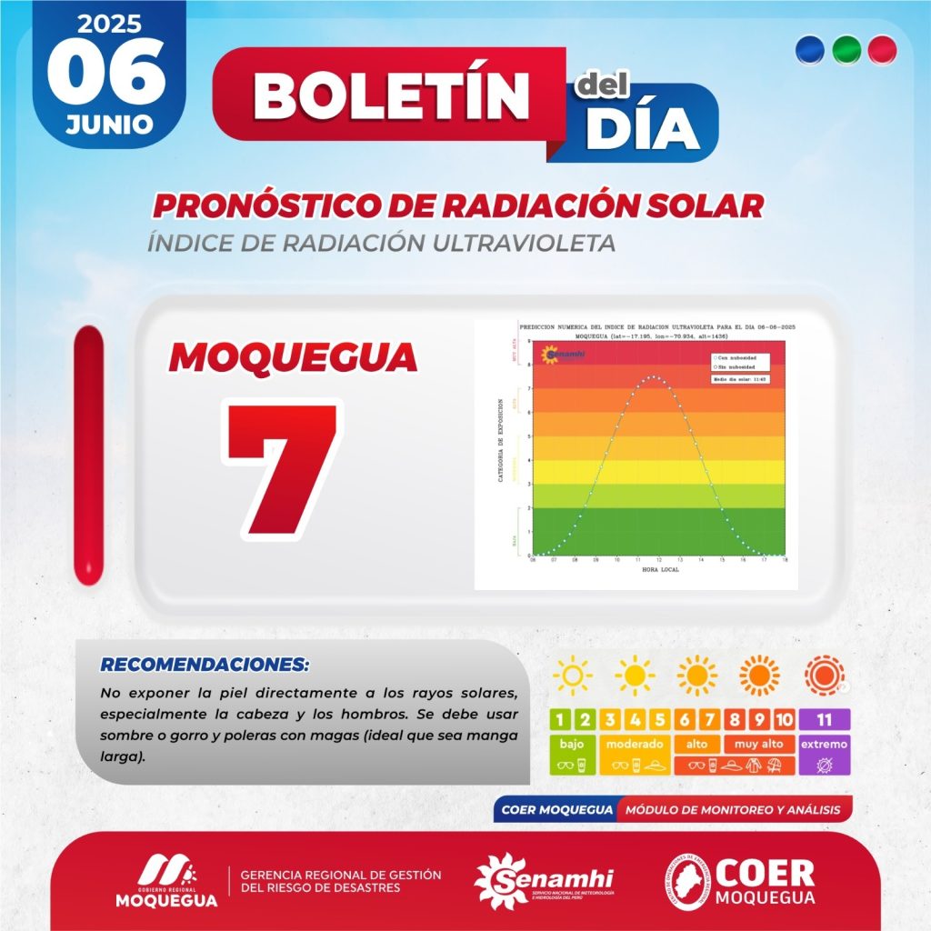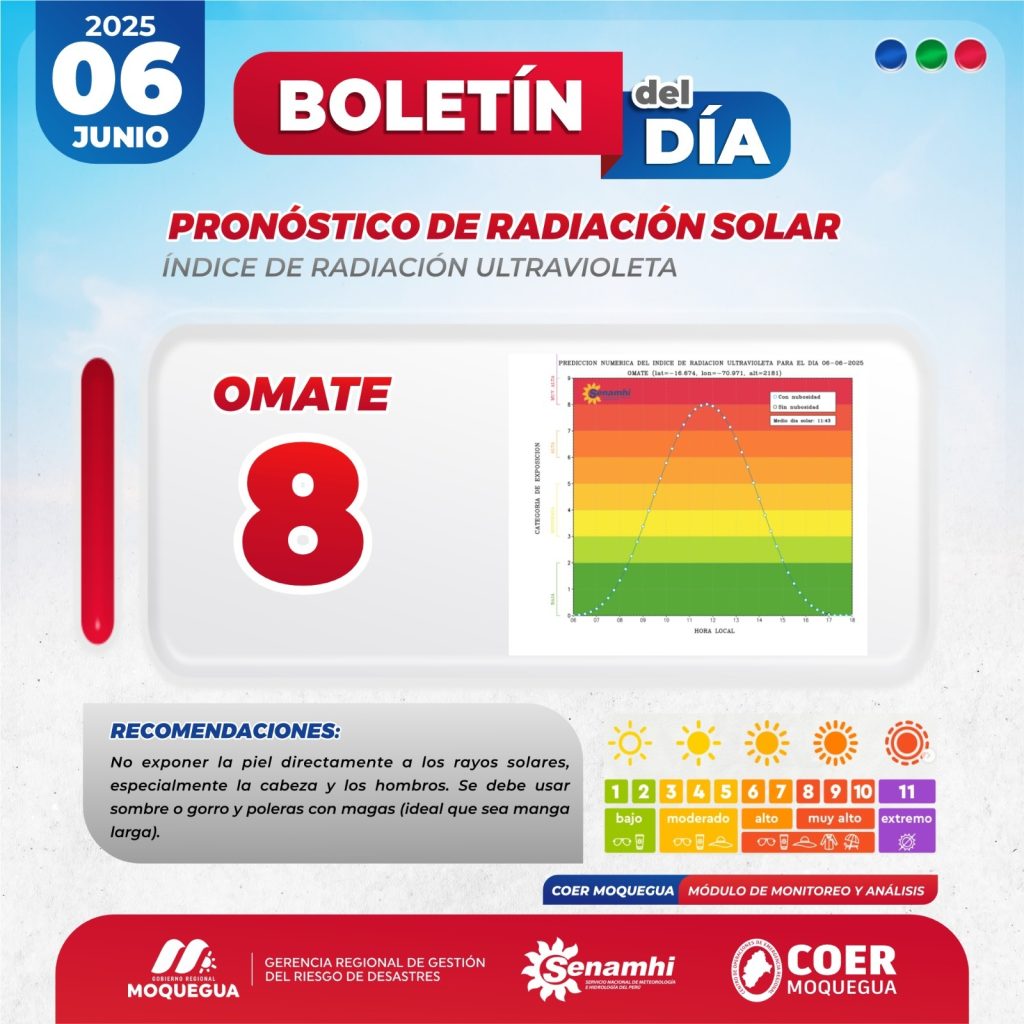 BOLETIN INFORMATIVO: "PRONOSTICO DE RADIACIÓN SOLAR PARA EL 06 DE JUNIO DEL 2025.