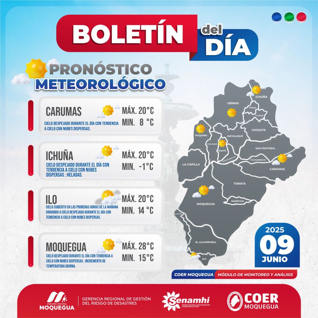 BOLETIN INFORMATIVO: «*PRONOSTICO METEOROLÓGICO» PARA EL 09 DE JUNIO DEL 2025.