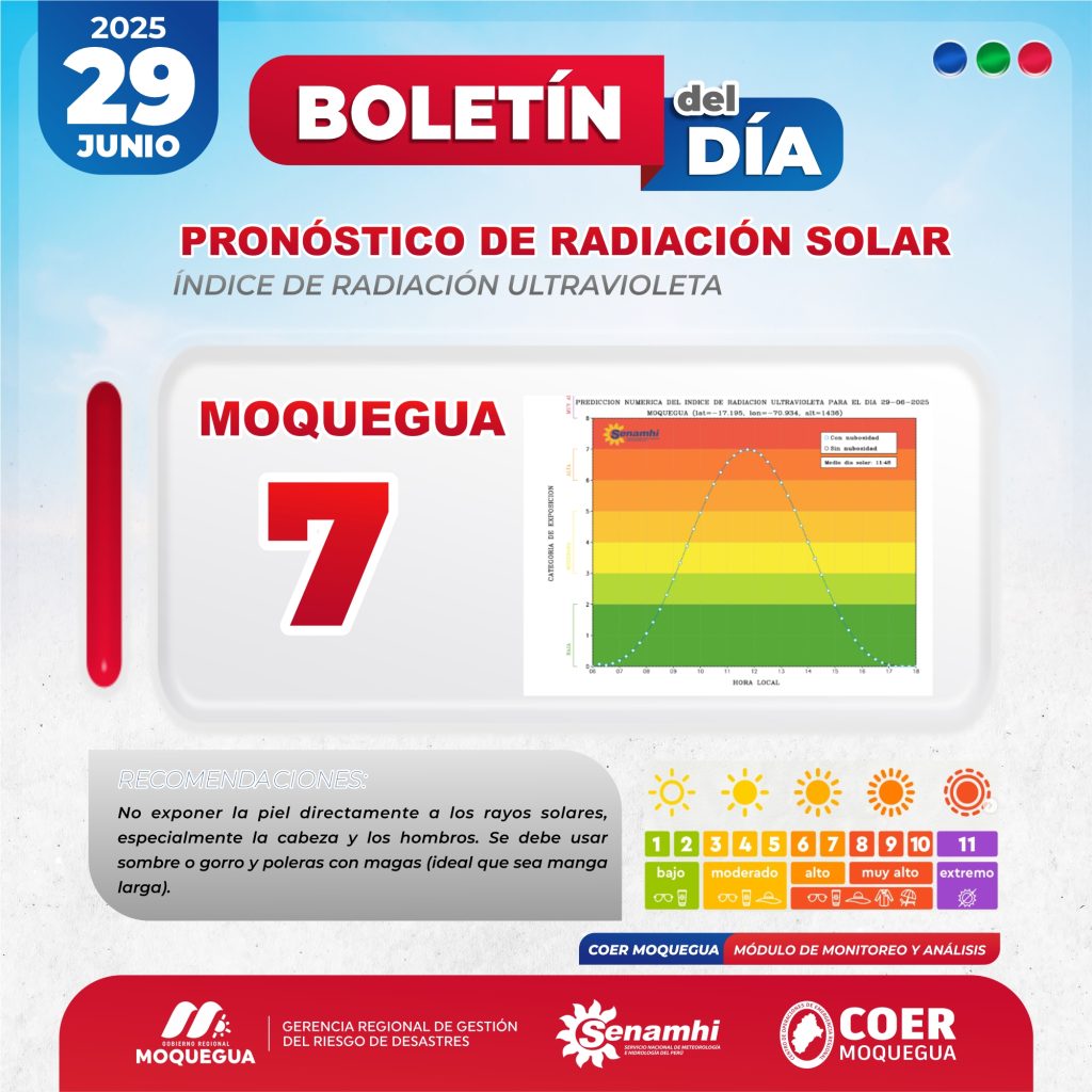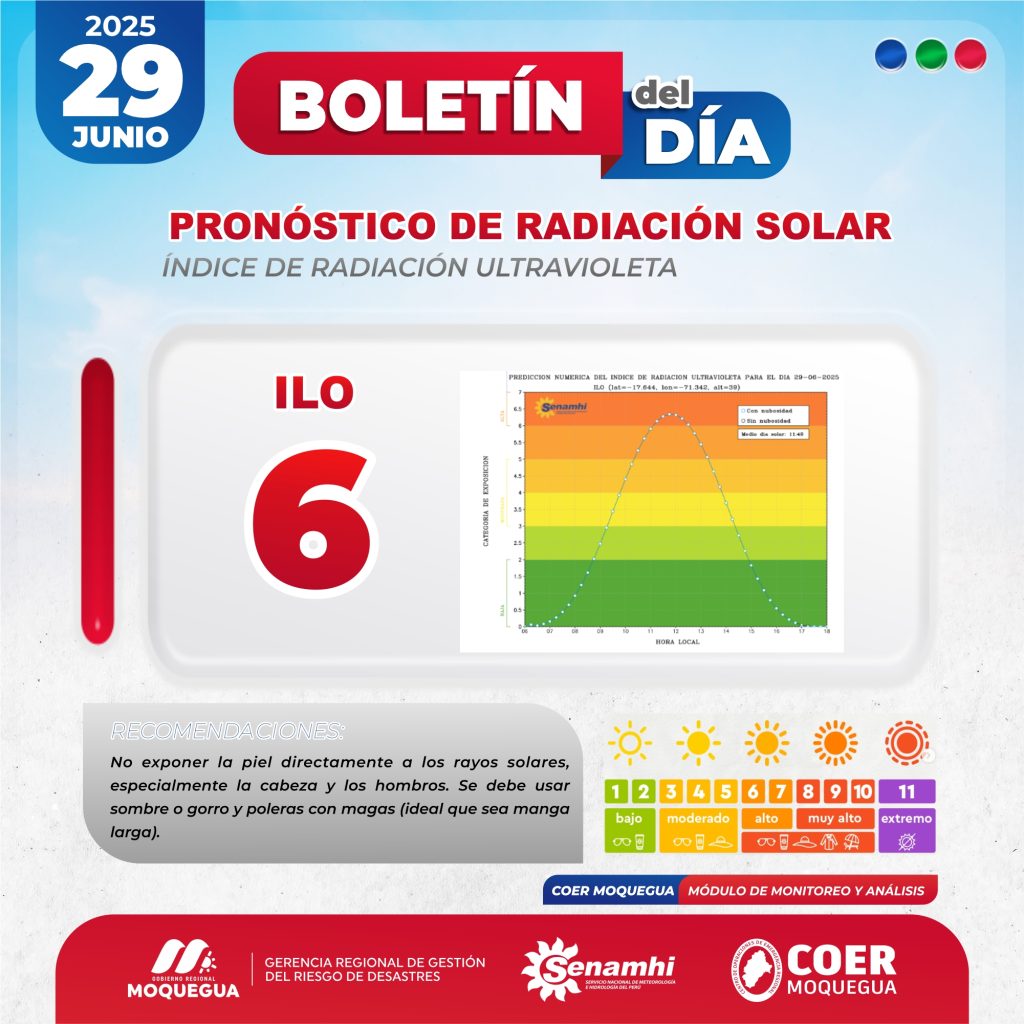 BOLETIN INFORMATIVO: «PRONOSTICO DE RADIACIÓN SOLAR» PARA EL 29 DE JUNIO DEL 2025.