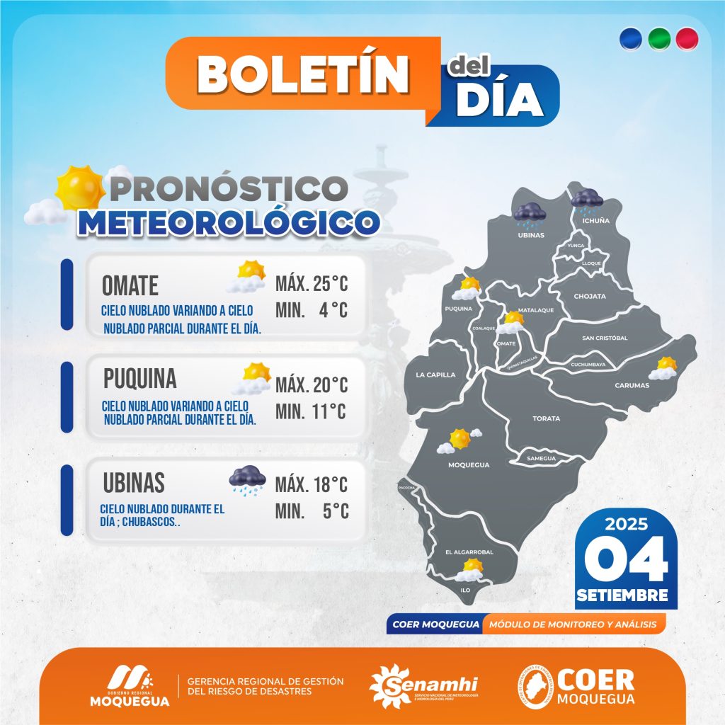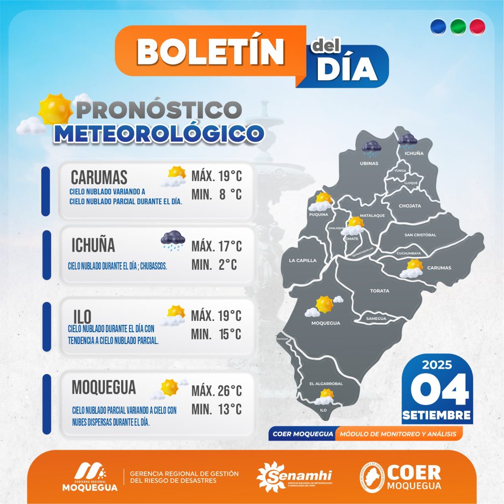 BOLETIN INFORMATIVO: "PRONOSTICO METEOROLÓGICO" PARA EL 04 DE SEPTIEMBRE DEL 2025.