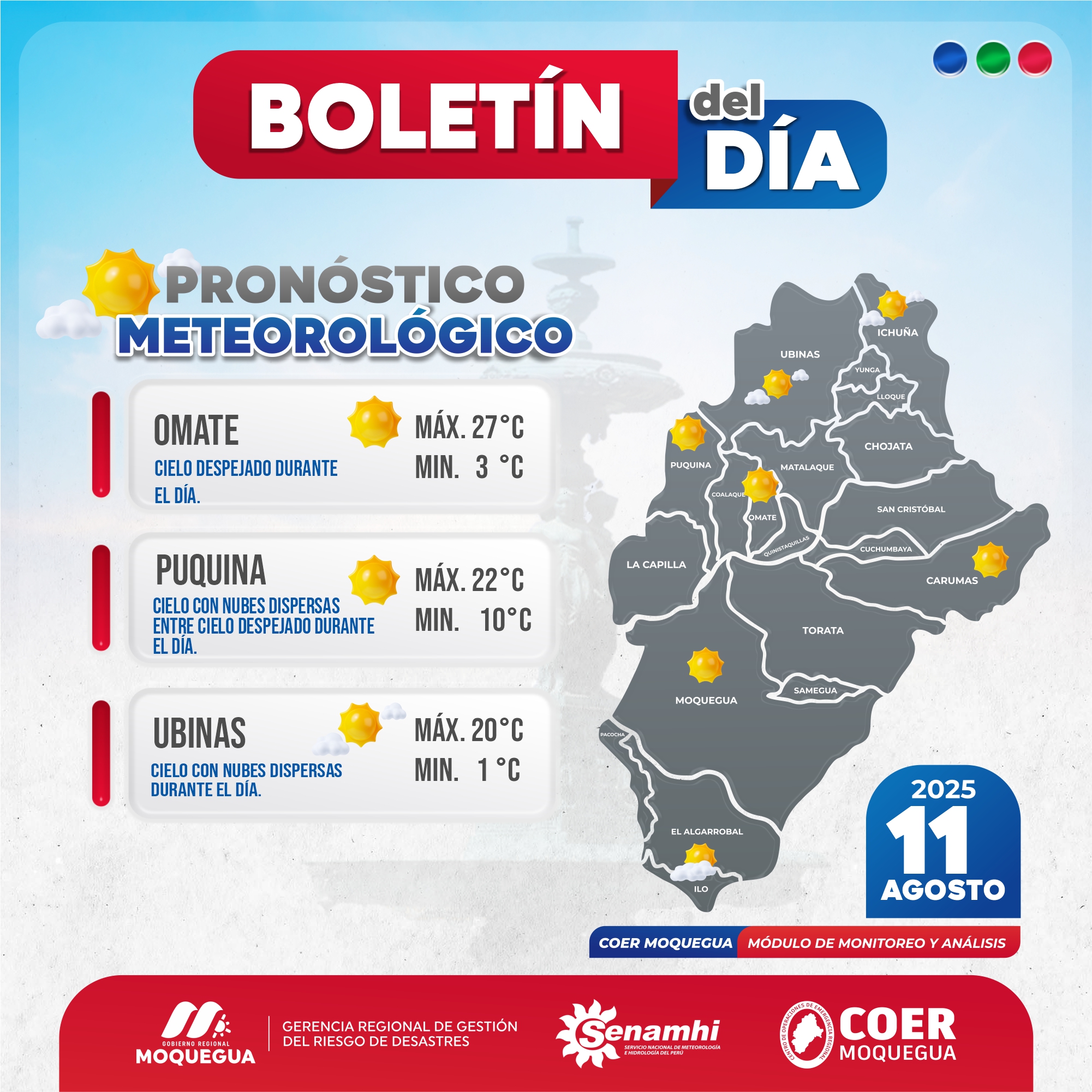 BOLETIN INFORMATIVO: "PRONOSTICO METEOROLOGICO PARA EL 11 DE AGOSTO DEL 2025.