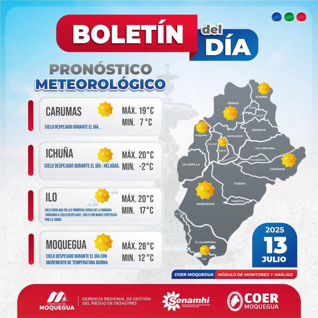 BOLETIN INFORMATIVO: "PRONOSTICO METEOROLÓGICO" PARA EL 13 DE JULIO DEL 2025.