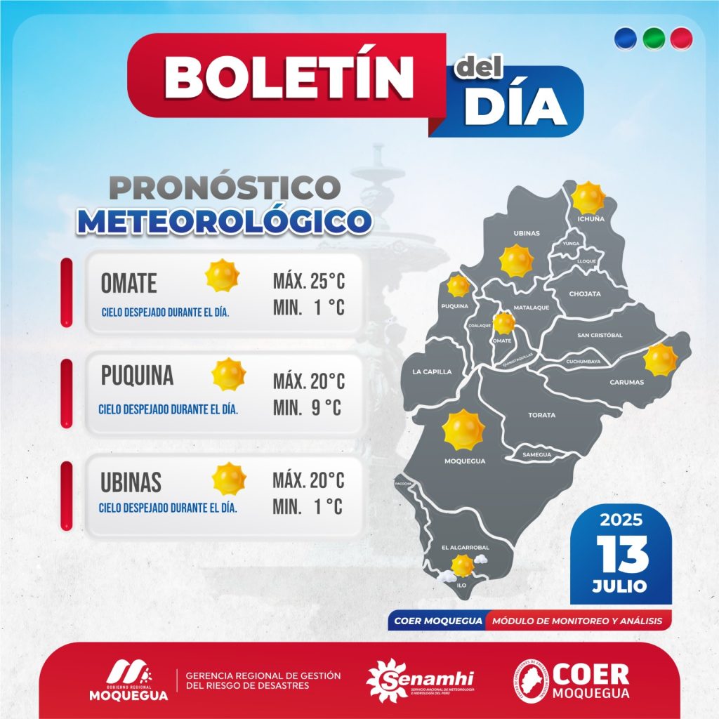 BOLETIN INFORMATIVO: «PRONOSTICO METEOROLÓGICO» PARA EL 13 DE JULIO DEL 2025.