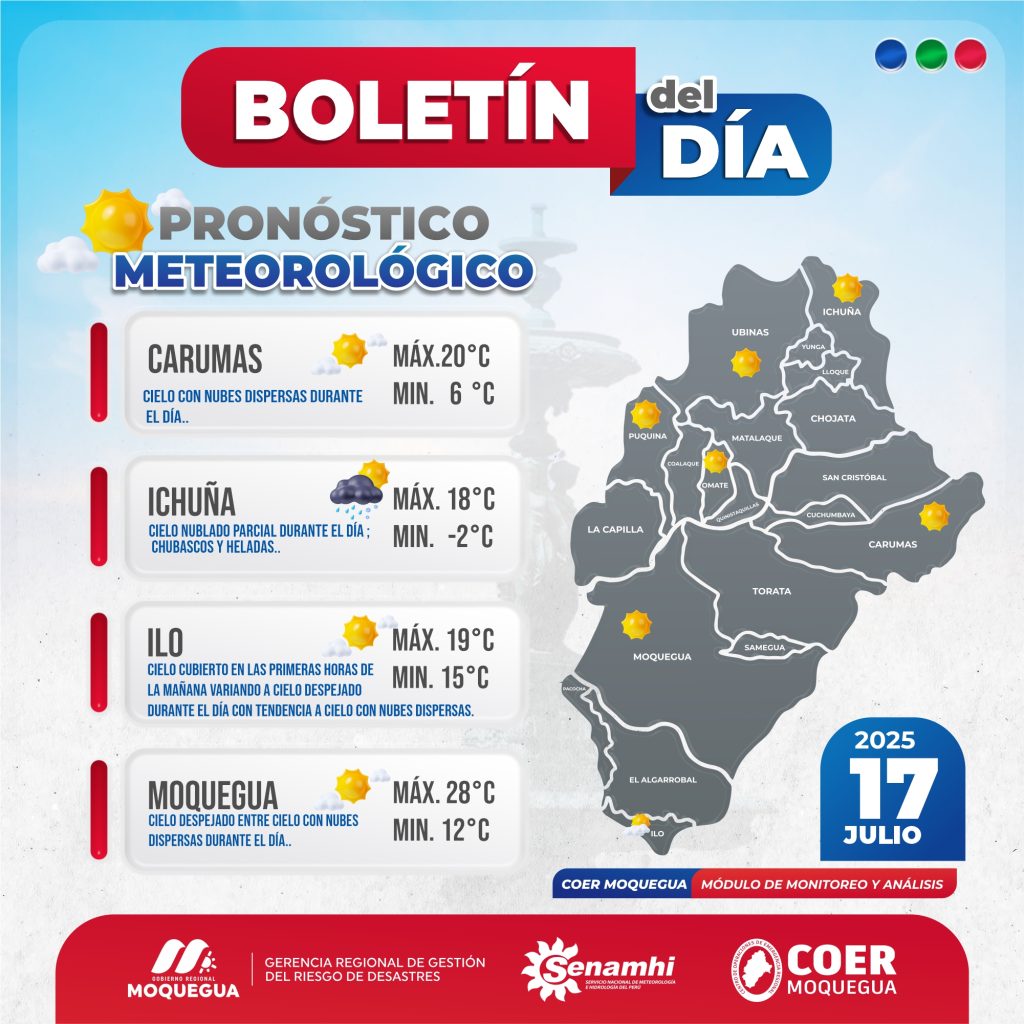 BOLETIN INFORMATIVO: "PRONOSTICO METEOROLÓGICO" PARA EL 17 DE JULIO DEL 2025.