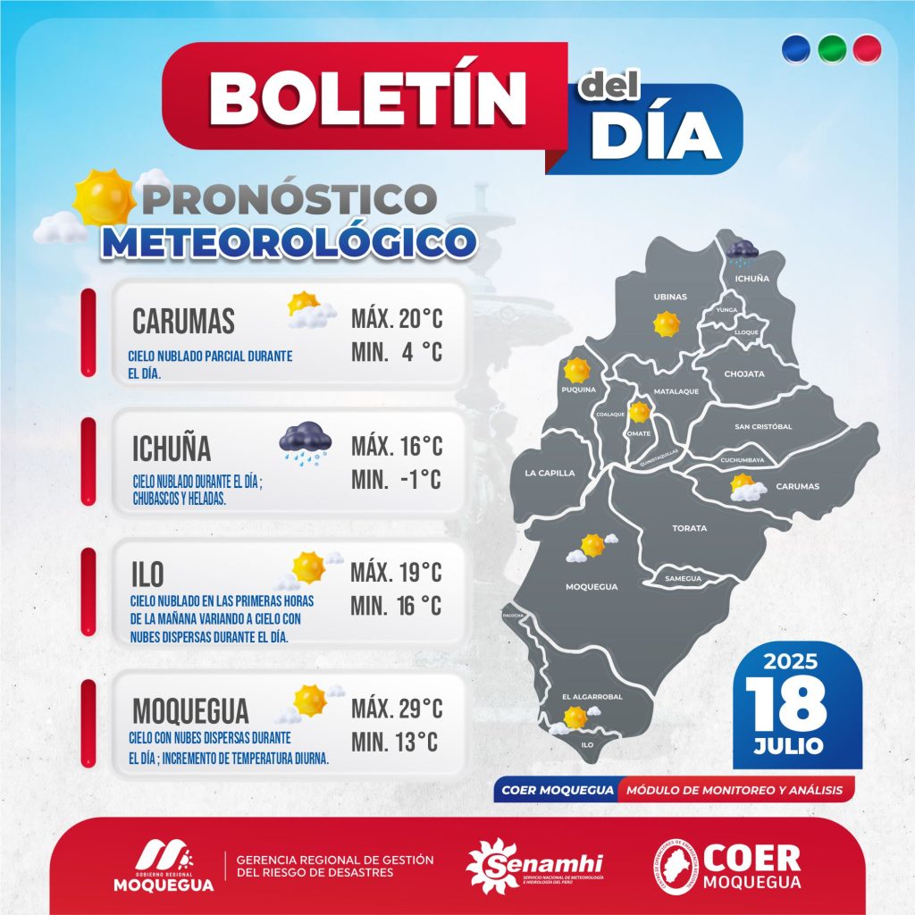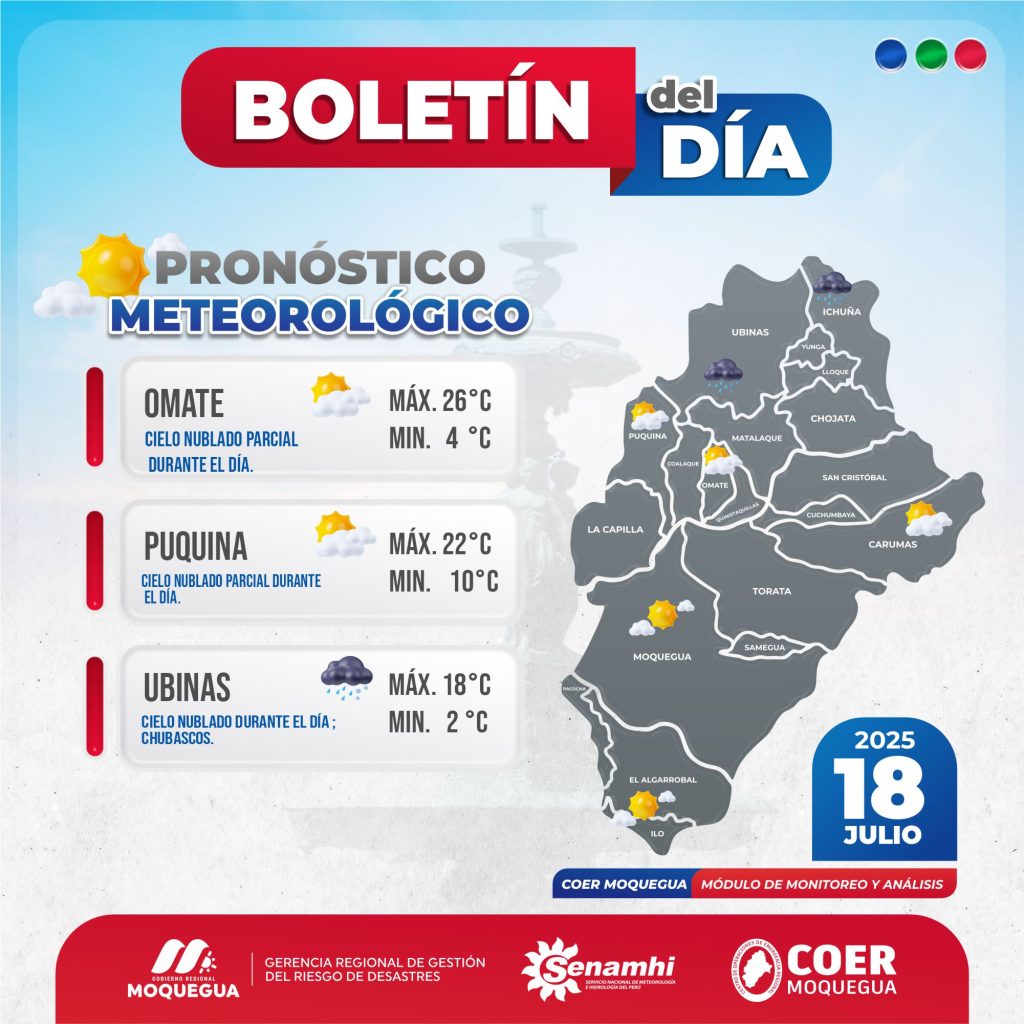 BOLETIN INFORMATIVO: «PRONOSTICO METEOROLÓGICO» PARA EL 18 DE JULIO DEL 2025.