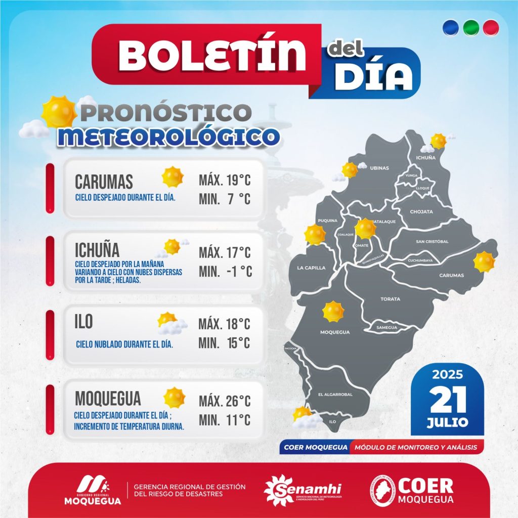 BOLETIN INFORMATIVO: «PRONOSTICO METEOROLÓGICO» PARA EL 21 DE JULIO DEL 2025.