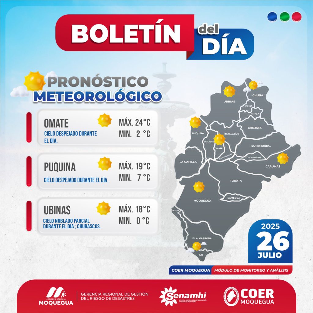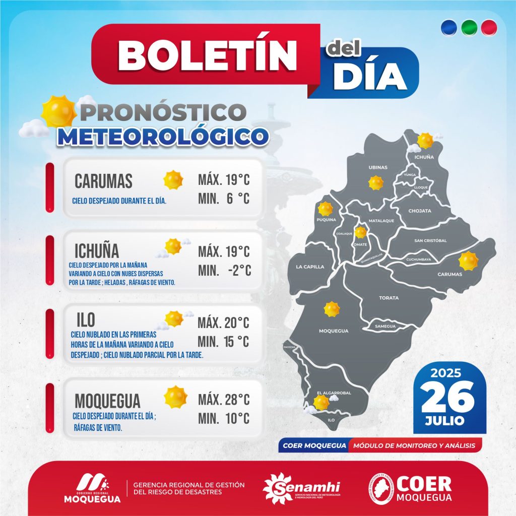 BOLETIN INFORMATIVO: "PRONOSTICO METEOROLÓGICO" PARA EL 26 DE JULIO DEL 2025.