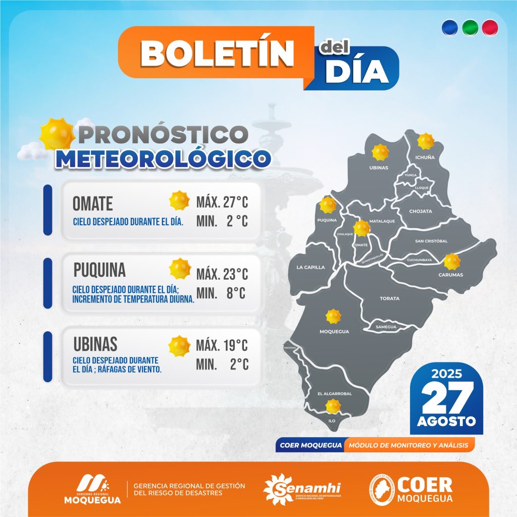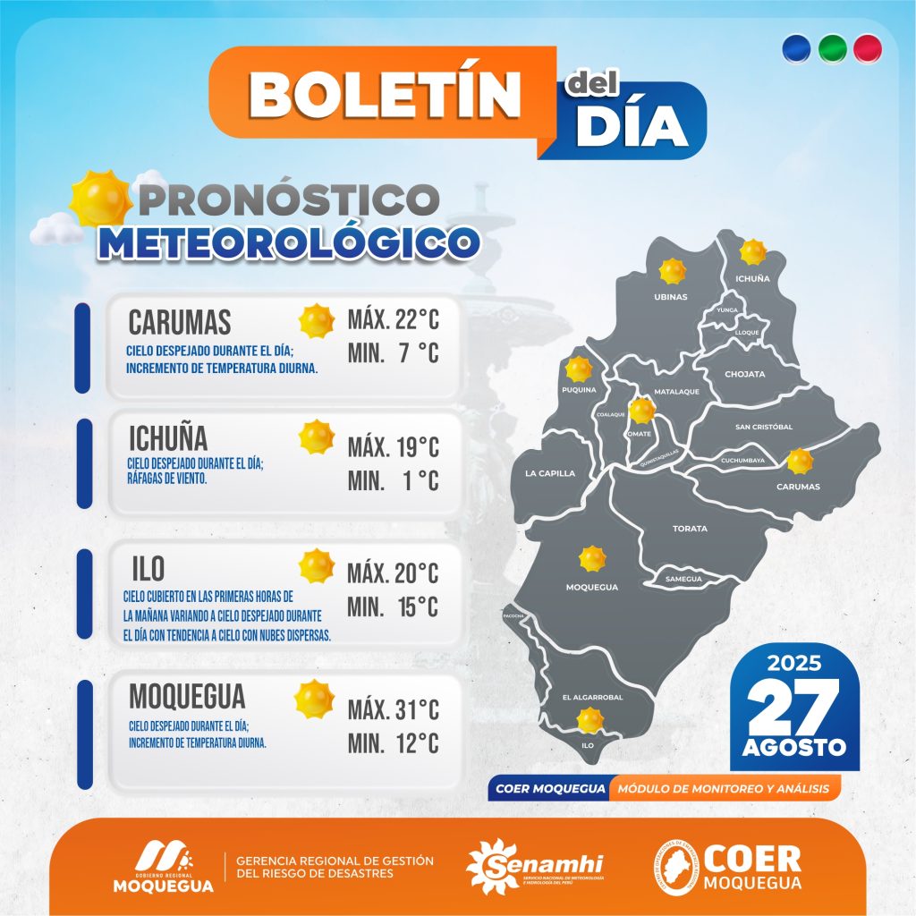 BOLETIN INFORMATIVO: «PRONOSTICO METEOROLOGICO PARA EL 27 DE AGOSTO DEL 2025.