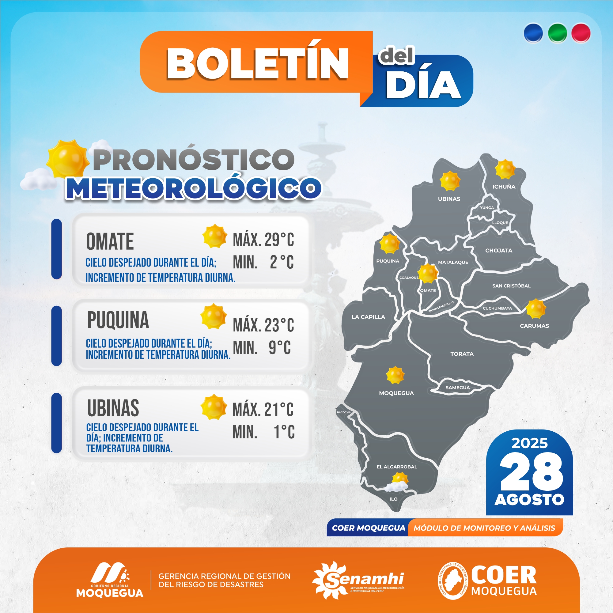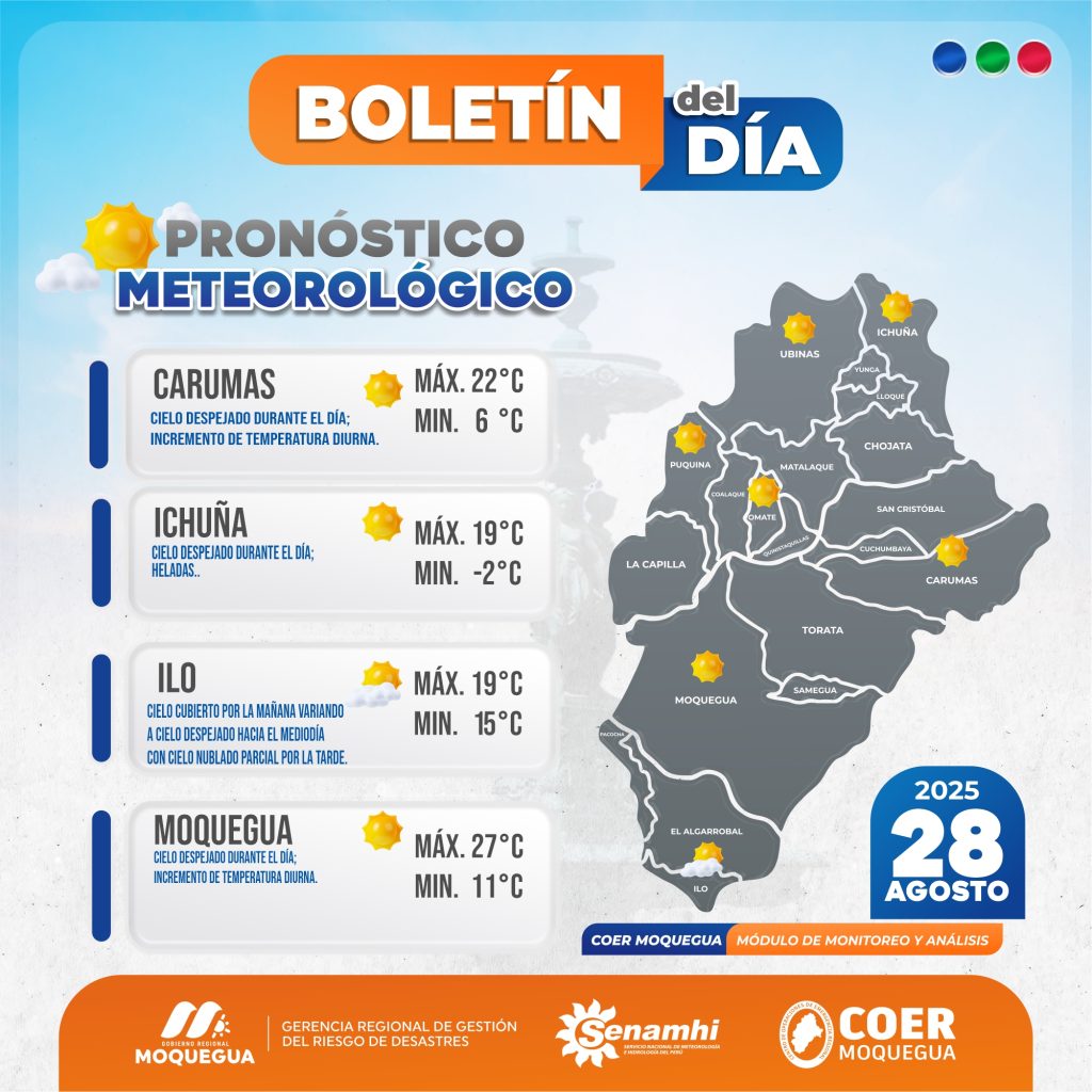 BOLETIN INFORMATIVO: «PRONOSTICO METEOROLOGICO PARA EL 28 DE AGOSTO DEL 2025.