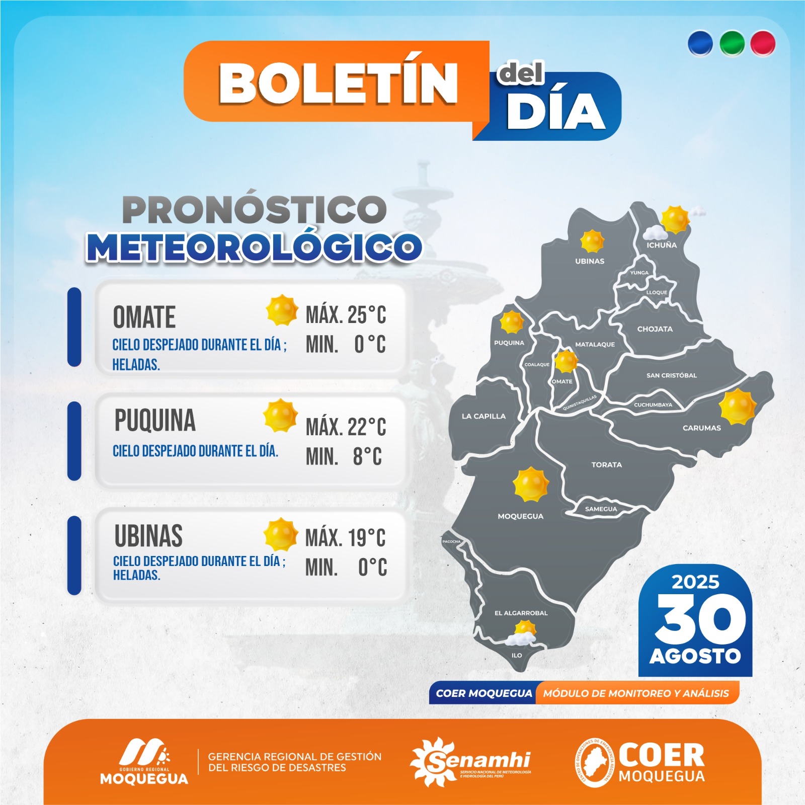BOLETIN INFORMATIVO: «PRONOSTICO METEOROLOGICO PARA EL 30 DE AGOSTO DEL 2025.