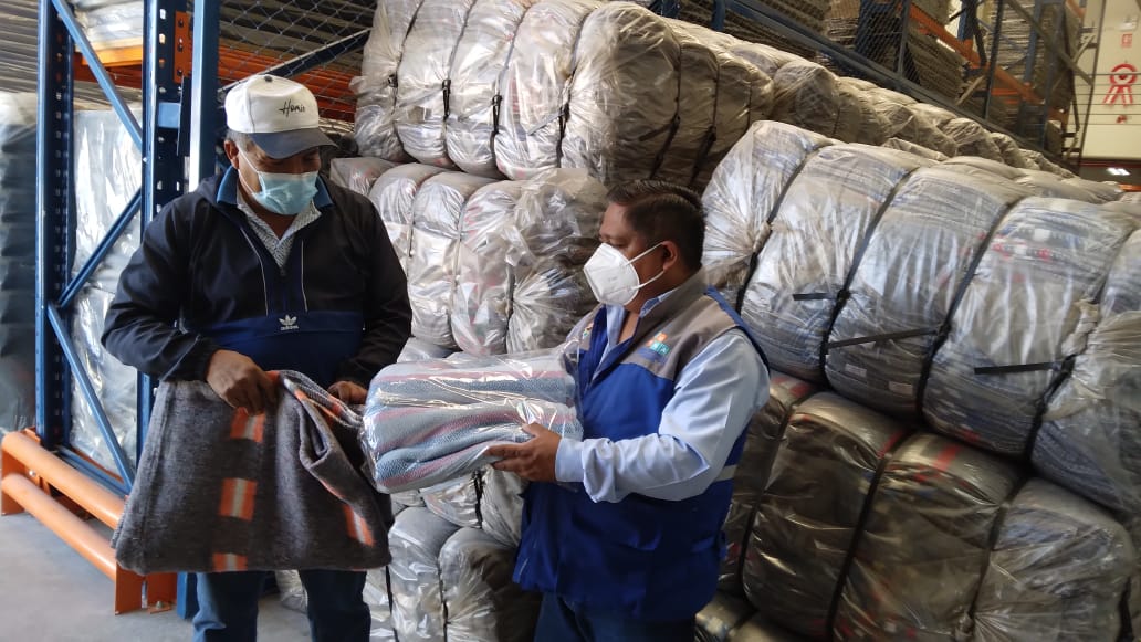 Un total de 925 frazadas y 925 colchas, fueron recepcionados el medio día de este martes 26 de julio, por el Alcalde de la Municipalidad Distrital de Coalaque, Sr. Marcos Alfreedo Apaza Rojas y el Secretario Técnico de Defensa Civil del distrito, Tec. José Casani García, desde las instalaciones del Almacén Central del Centro de Operaciones de Emergencia Regional – COER Moquegua, acto de entrega que también contó con la presencia del Gerente Regional de Recursos Naturales y Gestión del Medio Ambiente, Ing. Richard Martínez Cuela.
