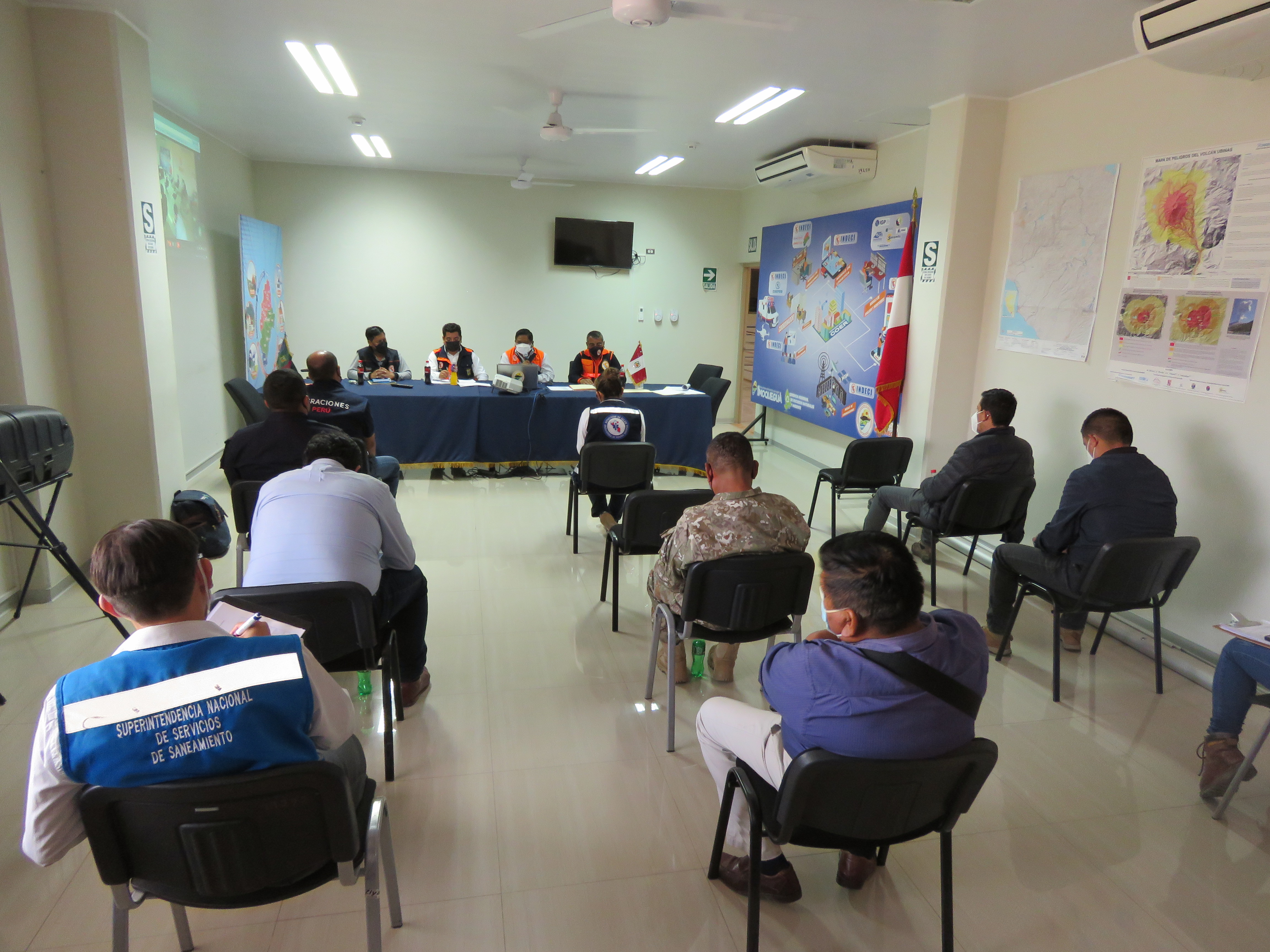 Minutos más tarde se instaló la Sala de Crisis en el auditorio del Centro de Operaciones de Emergencia Regional – COER Moquegua, con la participación de las entidades de primera respuesta, la Municipalidad Provincial de Mariscal Nieto, Municipalidad provincial de Ilo, EPS Moquegua, Sunass ODS Moquegua, Administración Local de Agua Moquegua, OSINERGMIN, Ministerio Público, PetroPerú, Gerencias y Direcciones Regionales, Ejército del Perú, Policía Nacional del Perú, entre otros.
