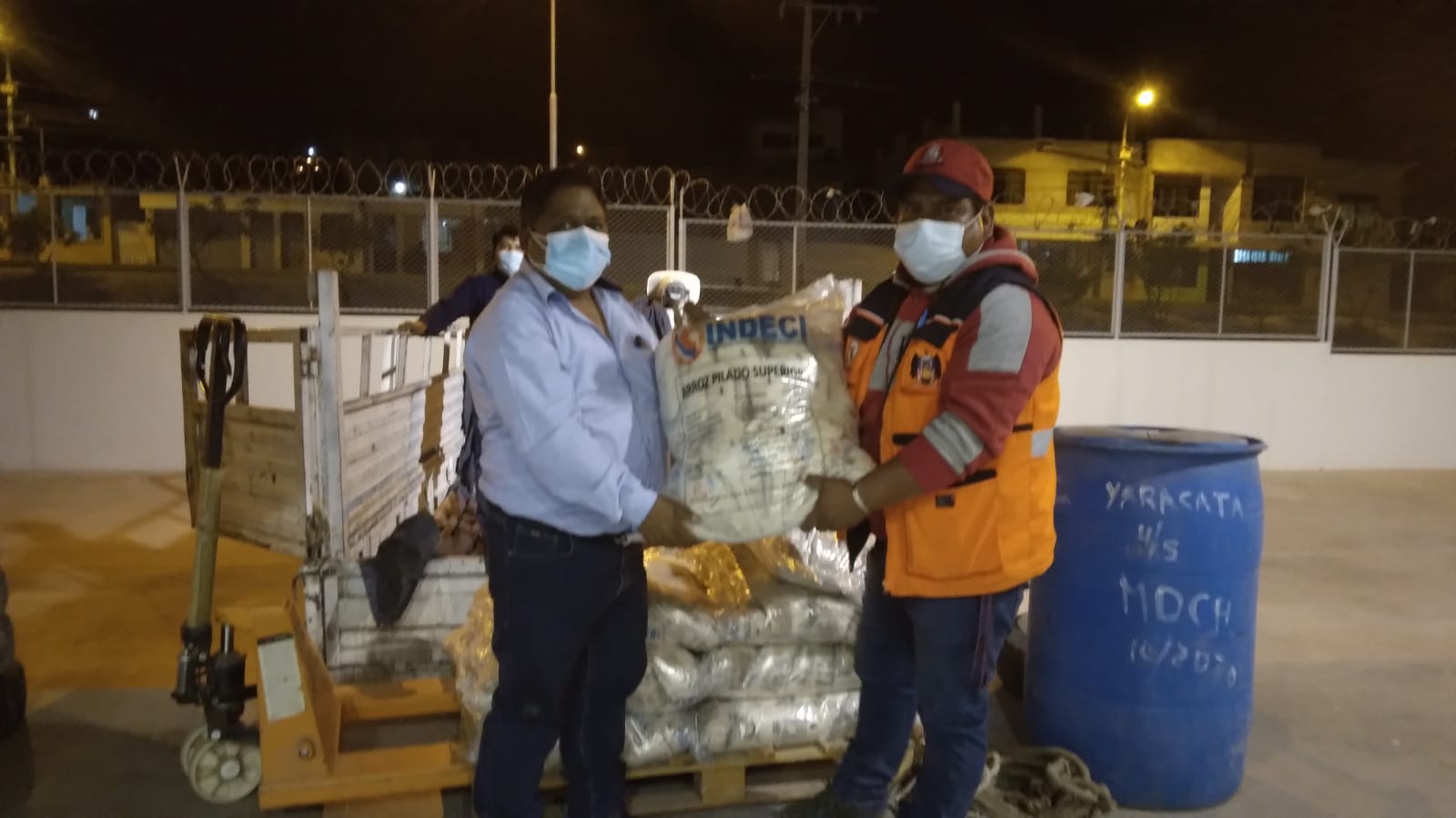 Con ello, se realiza la tercera acción de entrega, en marco a lo dispuesto en el Decreto Supremo N° 135-2021-PCM, que prorroga el Estado de Emergencia en los distritos de Chojata, Matalaque, Quinistaquillas, Coalaque, Omate y La Capilla de la provincia de General Sánchez Cerro y en los distritos de Carumas, Cuchumbaya y San Cristóbal de la provincia de Mariscal Nieto, por peligro inminente ante contaminación hídrica de los ríos Coralaque y Tambo.