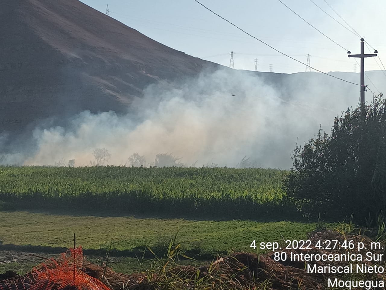 El fuego consumió un aproximado de 250 metros lineales de cañaverales y amenazaba con extenderse rápidamente a campos agrícolas, pero finalmente logró ser sofocado por personal de las Compañías de Bomberos de Samegua N° 189, Mariscal Nieto N° 74 y San Antonio N° 201.