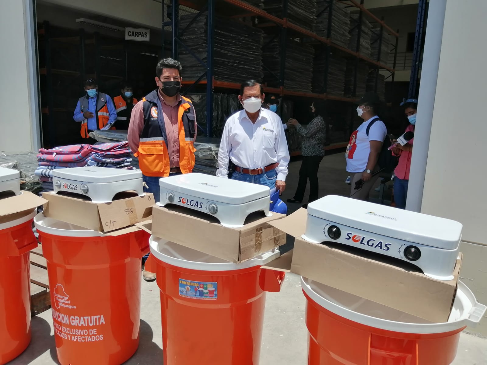 La entrega se realizó la tarde del lunes 14 de febrero, en las instalaciones del Almacén Central del Centro de Operaciones de Emergencia Regional – COER Moquegua. La ayuda humanitaria consistió en camas metálicas, colchones, frazadas, colchas y almohadas. También se entregó enseres como cocina a gas, platos, tazones y vasos. Además de las prendas de abrigo y la menajería, se entregaron productos como calaminas, triplay, listones de madera, carpas y clavos.