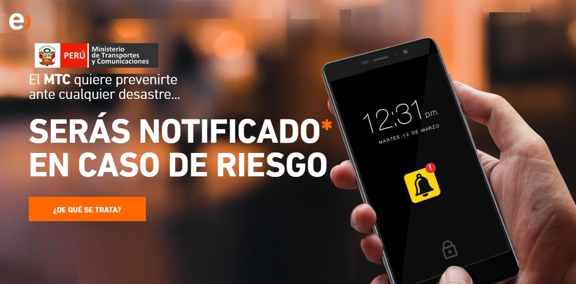 El Ministerio de Transportes y Comunicaciones ha informado que viene implementando el SISMATE (Sistema de Mensajería de Alerta Temprana de Emergencias) el cual permitirá advertir a la población de un gran peligro originado por fenómeno natural o acción humana. Con el sistema se prevé beneficiar a más de 22 millones de personas que usen teléfonos móviles.
