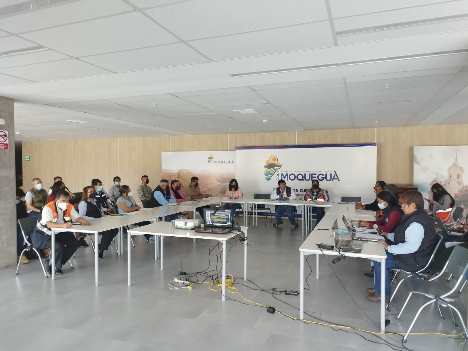 Dicha reunión tuvo lugar en el sótano del Gobierno Regional de Moquegua y contó con la presencia de los miembros de la Plataforma Regional, así como especialistas del INGEMMET quienes evaluaron los peligros geológicos en el Centro Poblado de Anascapa y Albergue Sirahuaya. Así mismo se abordó la implementación de acciones, prevención, reducción de riesgos de desastres, reparación y respuesta ante peligro inminente en dichos sectores.