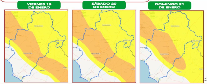 El nivel de peligro para Moquegua es naranja. Los distritos afectados en la