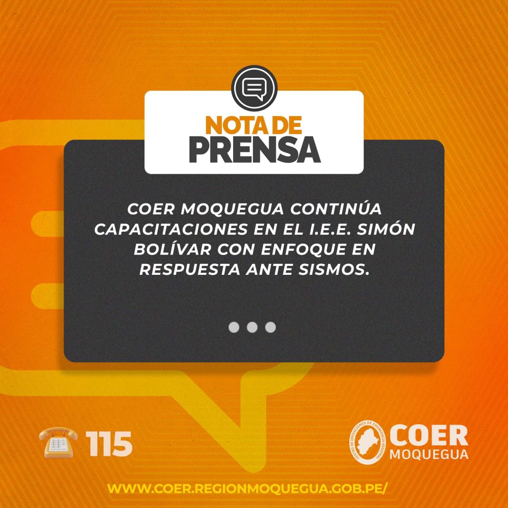 COER MOQUEGUA CONTINÚA CAPACITACIONES EN EL I.E.E. SIMÓN BOLÍVAR CON ENFOQUE EN RESPUESTA ANTE SISMOS
