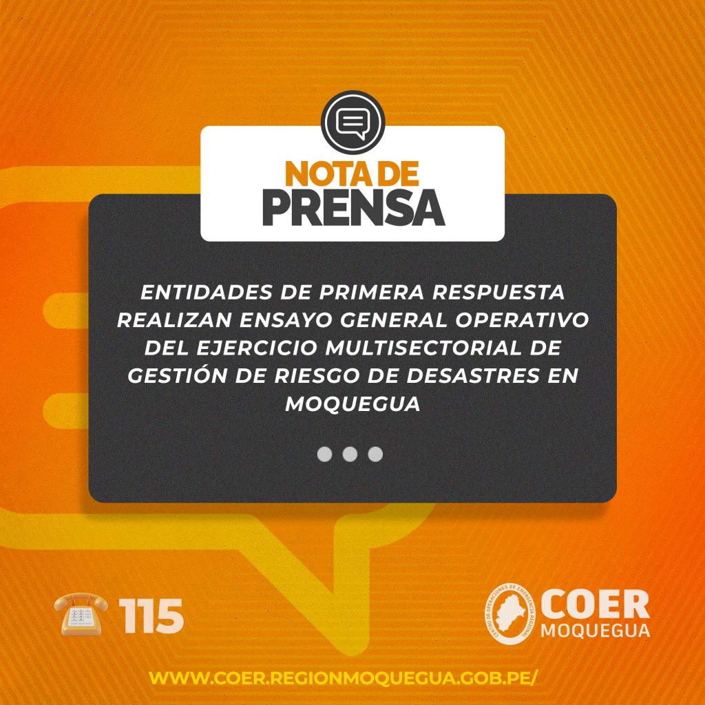 ENTIDADES DE PRIMERA RESPUESTA REALIZAN ENSAYO GENERAL OPERATIVO DEL EJERCICIO MULTISECTORIAL DE GESTIÓN DE RIESGO DE DESASTRES EN MOQUEGUA