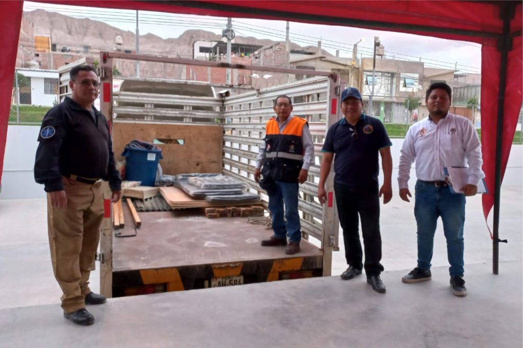 Asimismo, 32 unidades de madera tornillo, 18 planchas de acero galvanizado ondulada (calaminas), 14 unidades de triplay, así como clavos de acero. Además, prendas de abrigo como 12 calcetines para varón, 04 camisetas de algodón manga corta, 04 chompas de hilo para dama y 04 pantalonetas de licra.