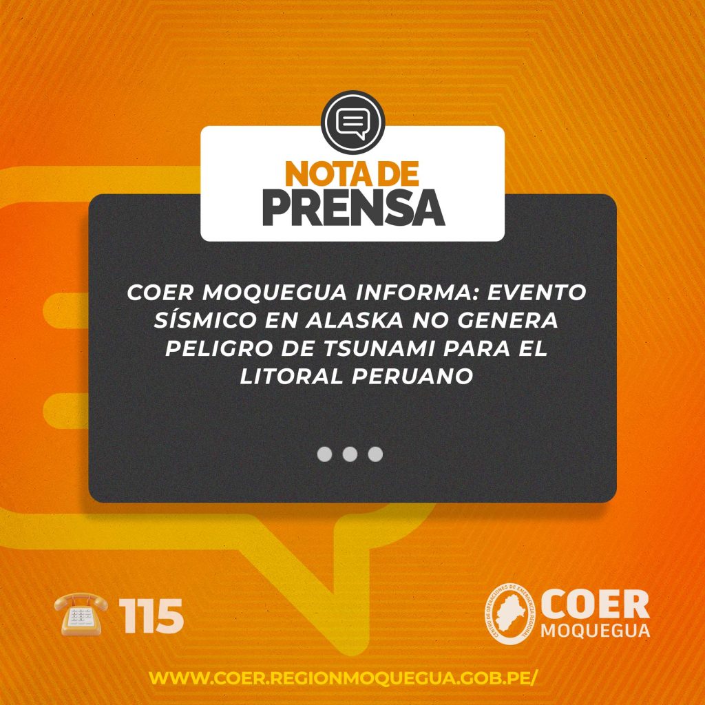 COER MOQUEGUA INFORMA: EVENTO SÍSMICO EN ALASKA NO GENERA PELIGRO DE TSUNAMI PARA EL LITORAL PERUANO