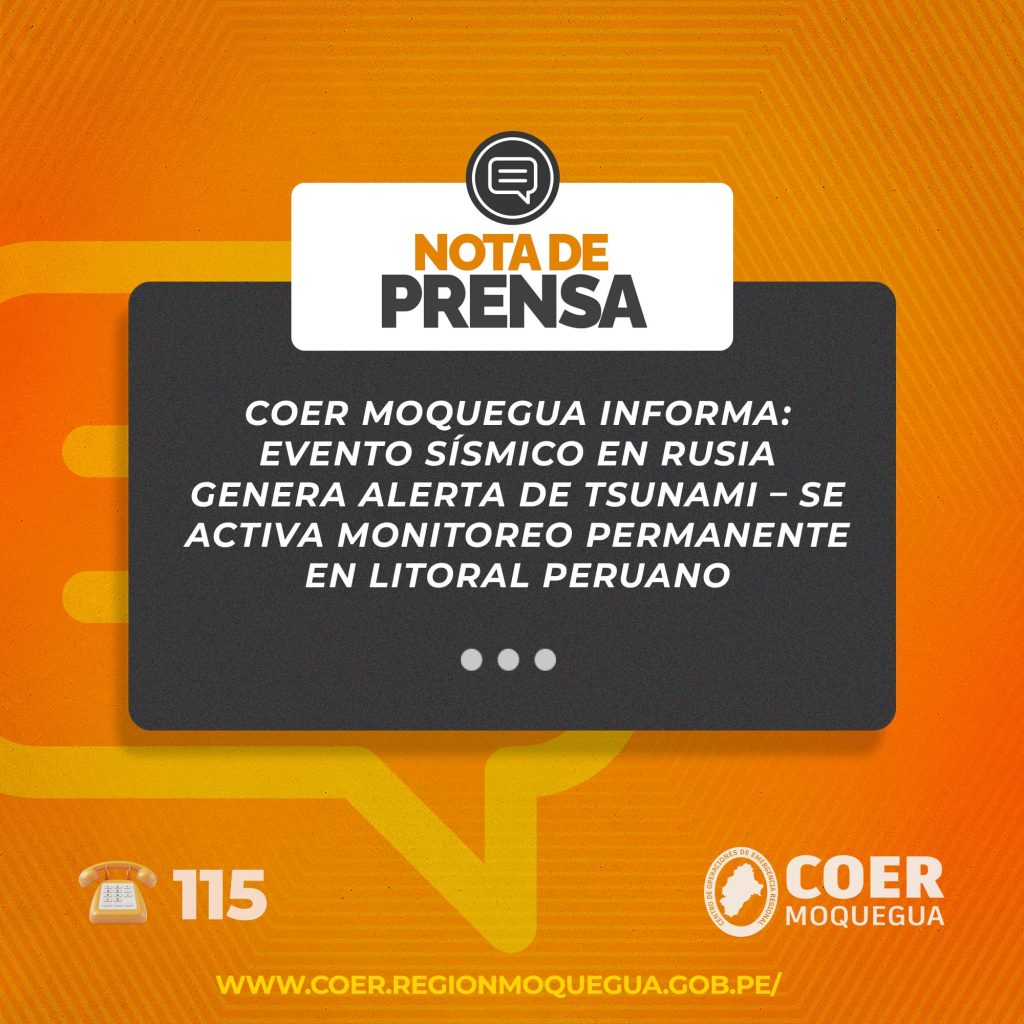 COER MOQUEGUA INFORMA: EVENTO SÍSMICO EN RUSIA GENERA ALERTA DE TSUNAMI – SE ACTIVA MONITOREO PERMANENTE EN LITORAL PERUANO